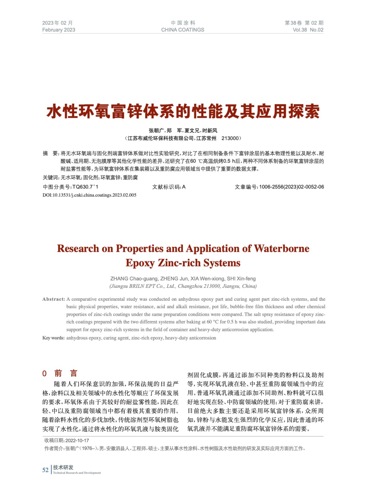 水性環(huán)氧富鋅體系的性能及其應(yīng)用探索