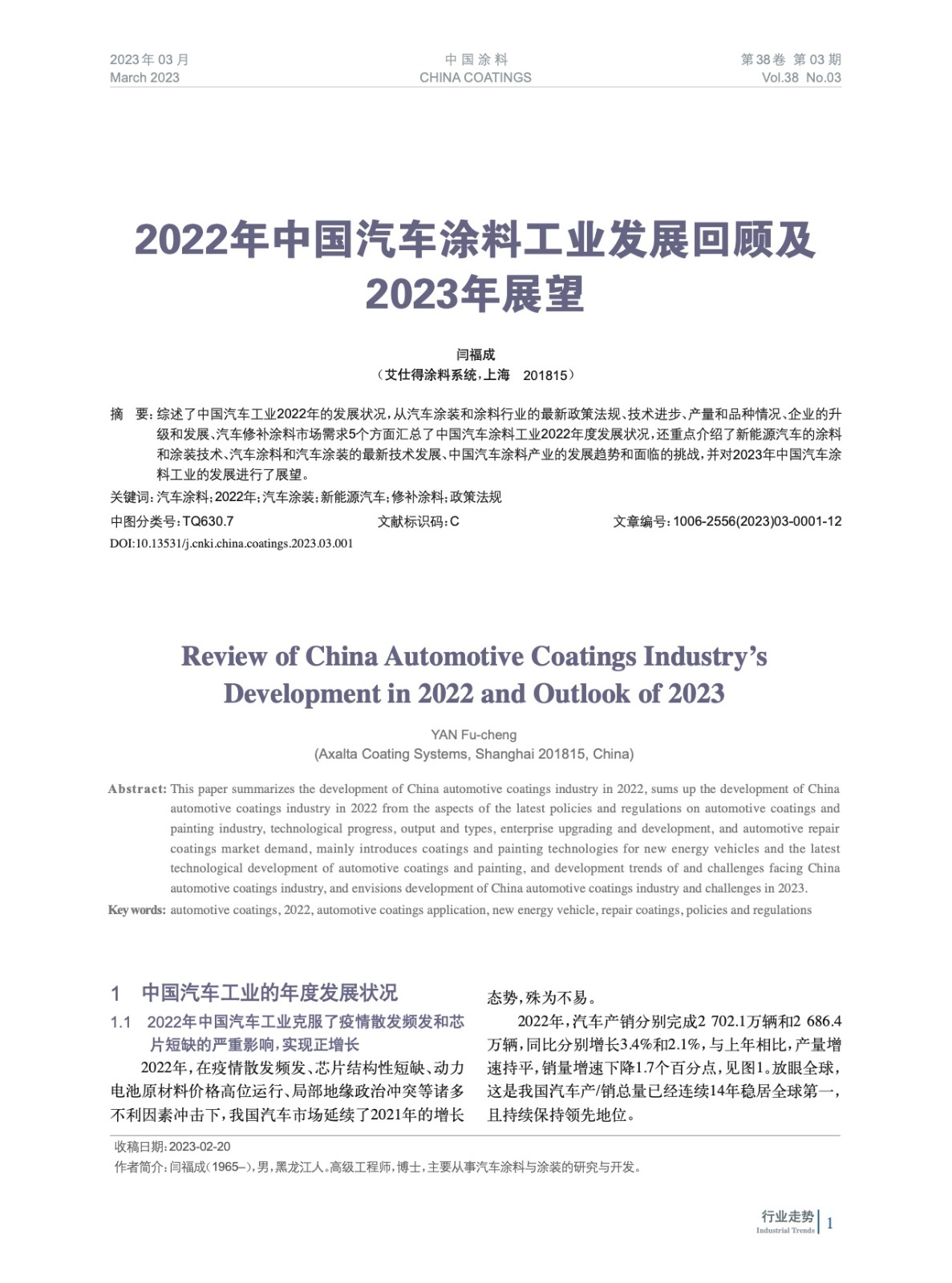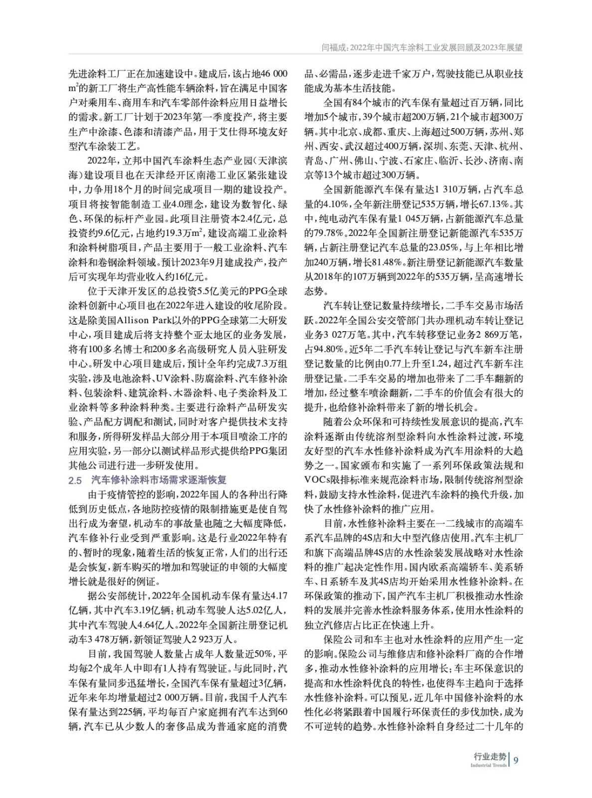 2022年中國汽車涂料工業(yè)發(fā)展回顧及2023年展望