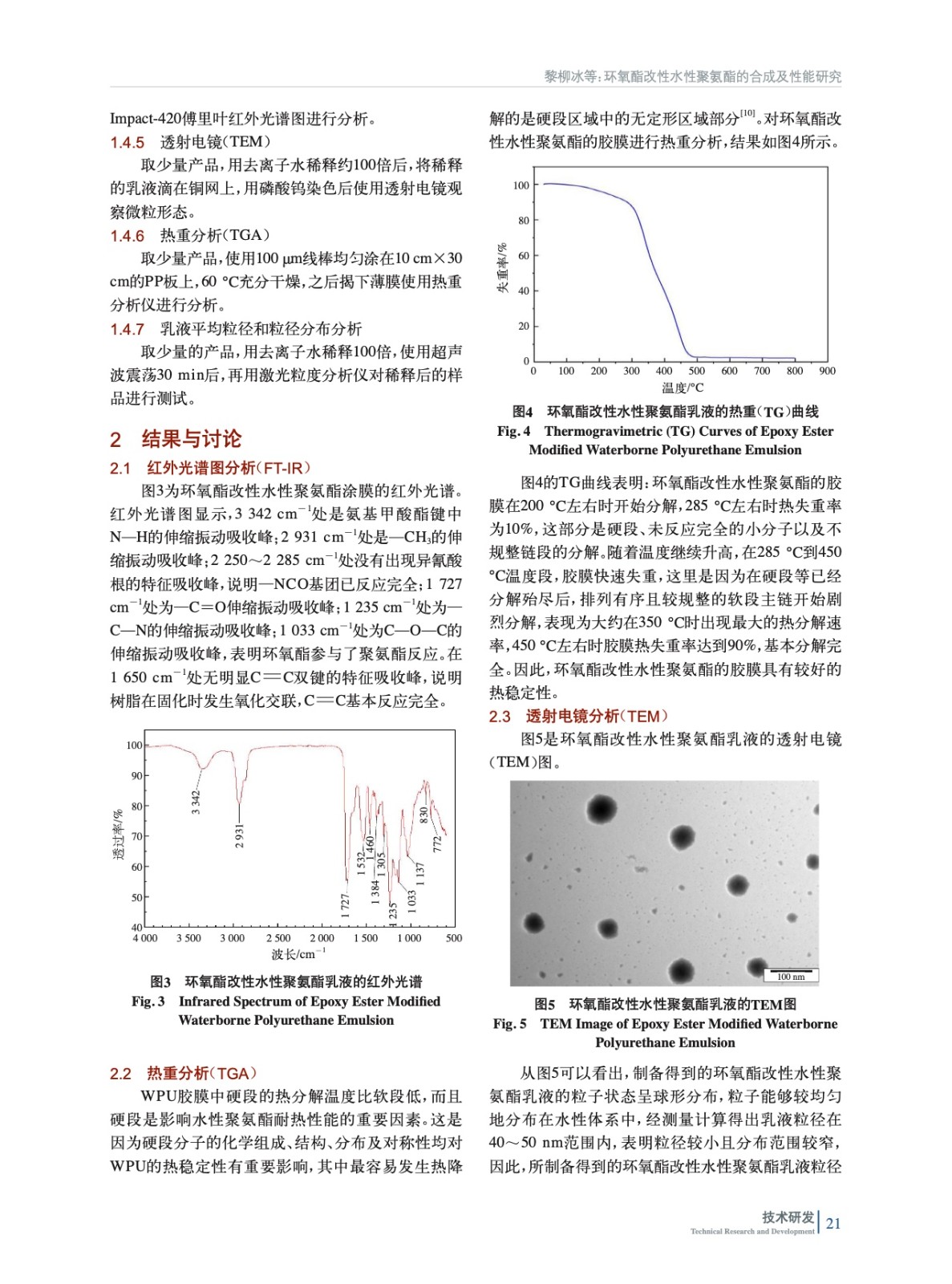 環(huán)氧酯改性水性聚氨酯的合成及性能研究