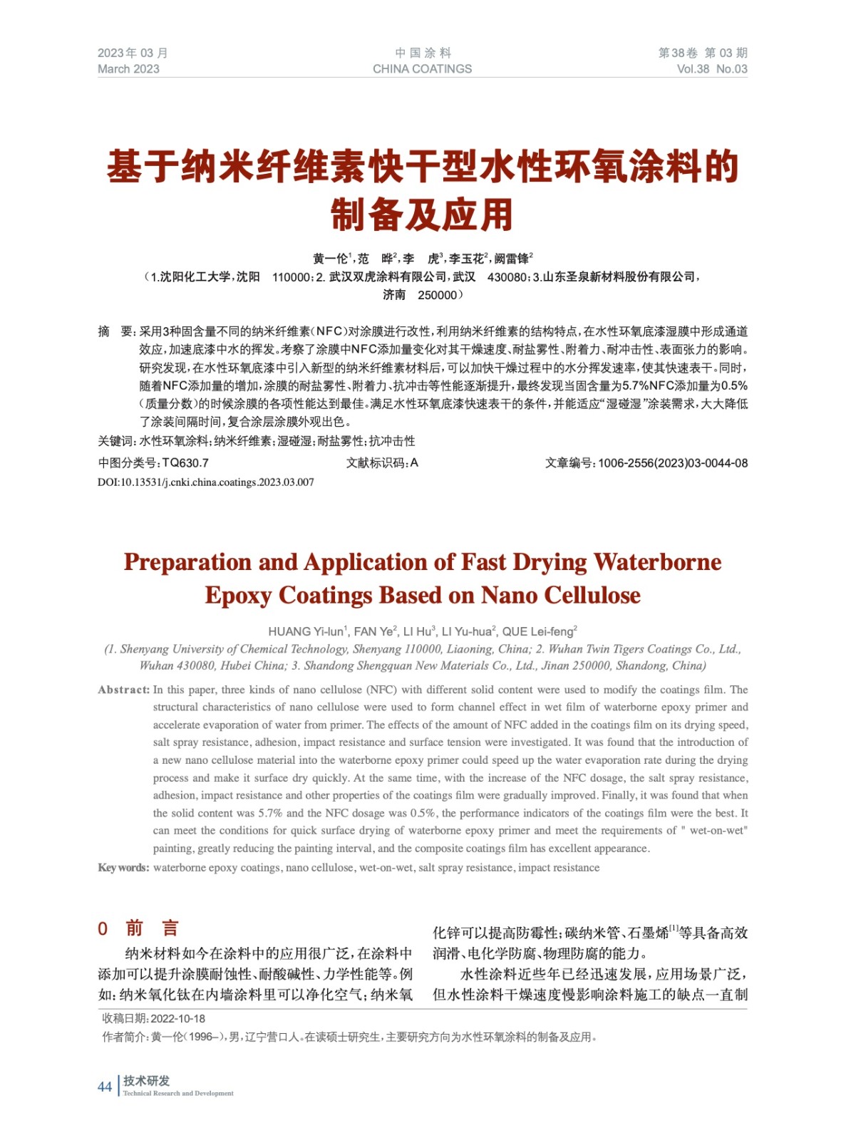 本文系作者@黃一倫,范 曄,李 虎,李玉花,闕雷鋒 授權中國涂料網發表,并經中國涂料網編輯,未經允許不得轉載,如需轉載請聯系chinacoatingnet@vip.163.com