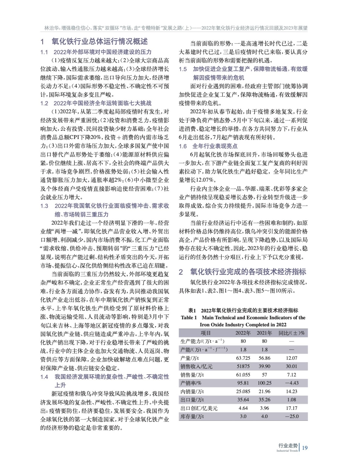 增強(qiáng)穩(wěn)住信心,落實(shí)“雙循環(huán)”市場(chǎng),走“專精特新”發(fā)展之路(上)——2022年氧化鐵行業(yè)經(jīng)濟(jì)運(yùn)行情況回顧及2023年展望