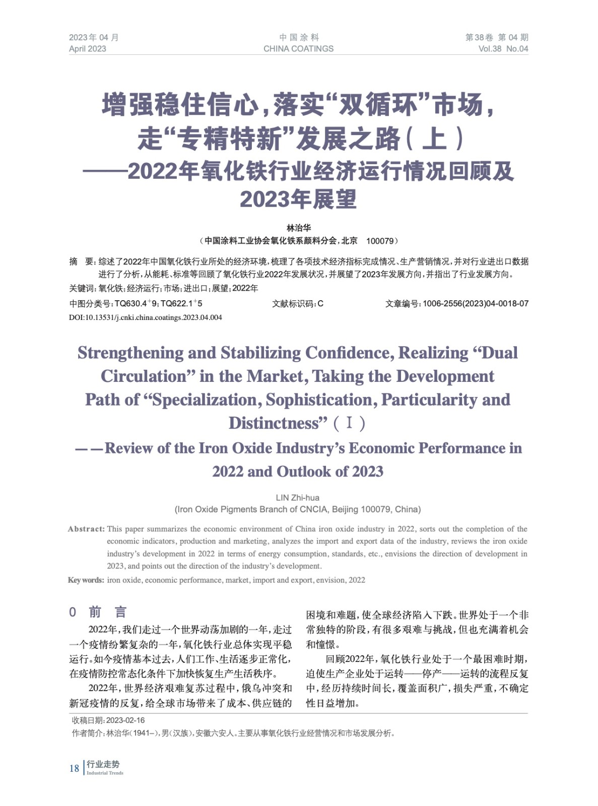 摘要:綜述了2022年中國(guó)氧化鐵行業(yè)所處的經(jīng)濟(jì)環(huán)境,梳理了各項(xiàng)技術(shù)經(jīng)濟(jì)指標(biāo)完成情況、生產(chǎn)營(yíng)銷情況,并對(duì)行業(yè)進(jìn)出口數(shù)據(jù)進(jìn)行了分析,從能耗、標(biāo)準(zhǔn)等回顧了氧化鐵行業(yè)2022年發(fā)展?fàn)顩r,并展望了2023年發(fā)展方向,并指出了行業(yè)發(fā)展方向。