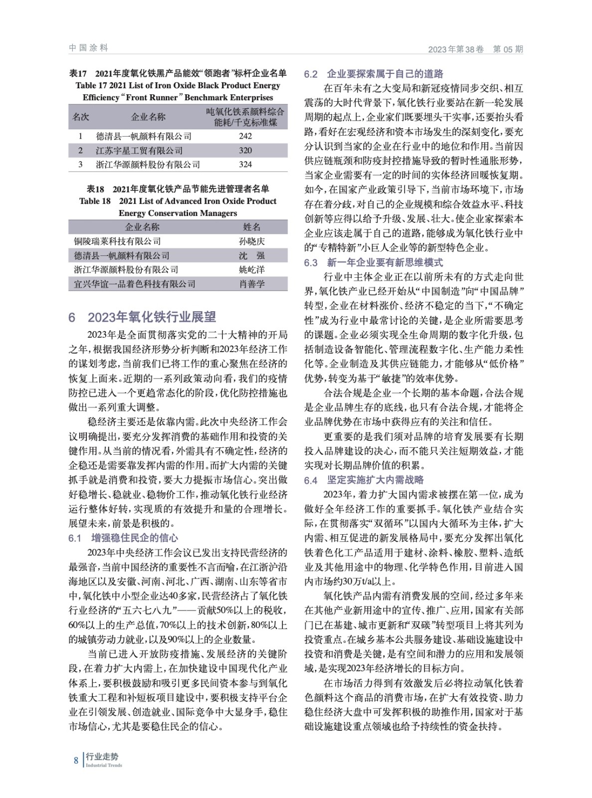 增強(qiáng)穩(wěn)住信心,落實(shí)“雙循環(huán)”市場,走“專精特新”發(fā)展之路(下)——2022年氧化鐵行業(yè)經(jīng)濟(jì)運(yùn)行情況回顧及2023年展望