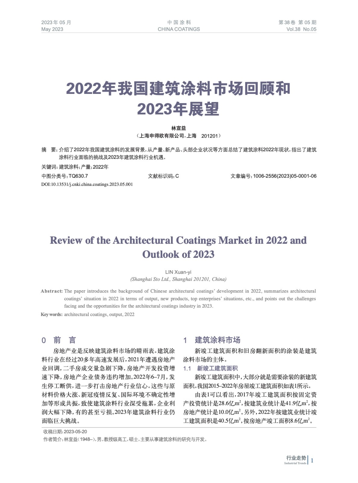 介紹了2022年我國建筑涂料的發展背景,從產量、新產品、頭部企業狀況等方面總結了建筑涂料2022年現狀,指出了建筑涂料行業面臨的挑戰及2023年建筑涂料行業機遇。