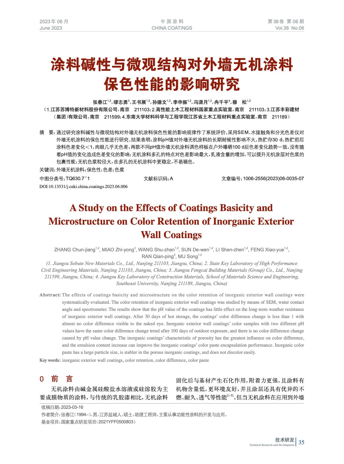 本文系作者@張春江,繆志勇,王書展,孫德文,李申振,馮瀟月,冉千平,穆 松 授權(quán)中國(guó)涂料網(wǎng)發(fā)表,并經(jīng)中國(guó)涂料網(wǎng)編輯,未經(jīng)允許不得轉(zhuǎn)載,如需轉(zhuǎn)載請(qǐng)聯(lián)系chinacoatingnet@vip.163.com