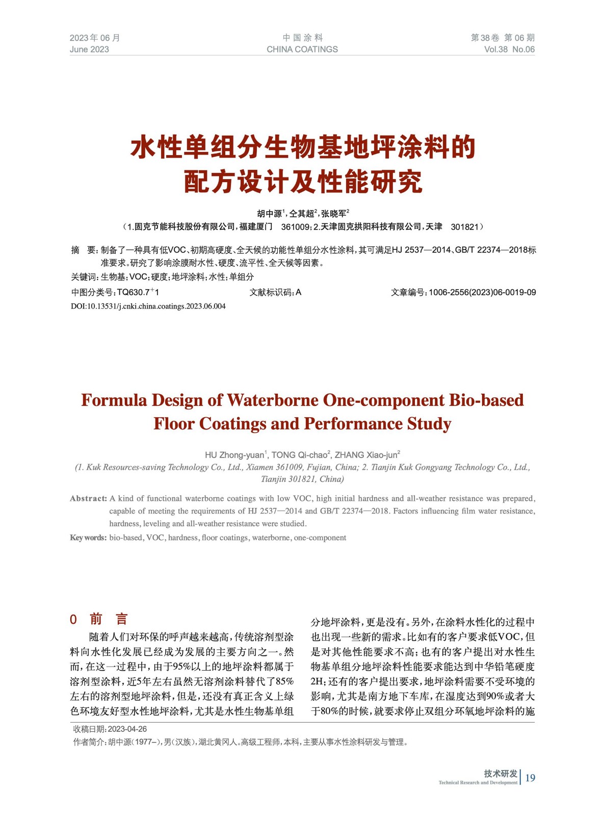 本文系作者@胡中源,仝其超,張曉軍 授權(quán)中國涂料網(wǎng)發(fā)表,并經(jīng)中國涂料網(wǎng)編輯,未經(jīng)允許不得轉(zhuǎn)載,如需轉(zhuǎn)載請聯(lián)系chinacoatingnet@vip.163.com