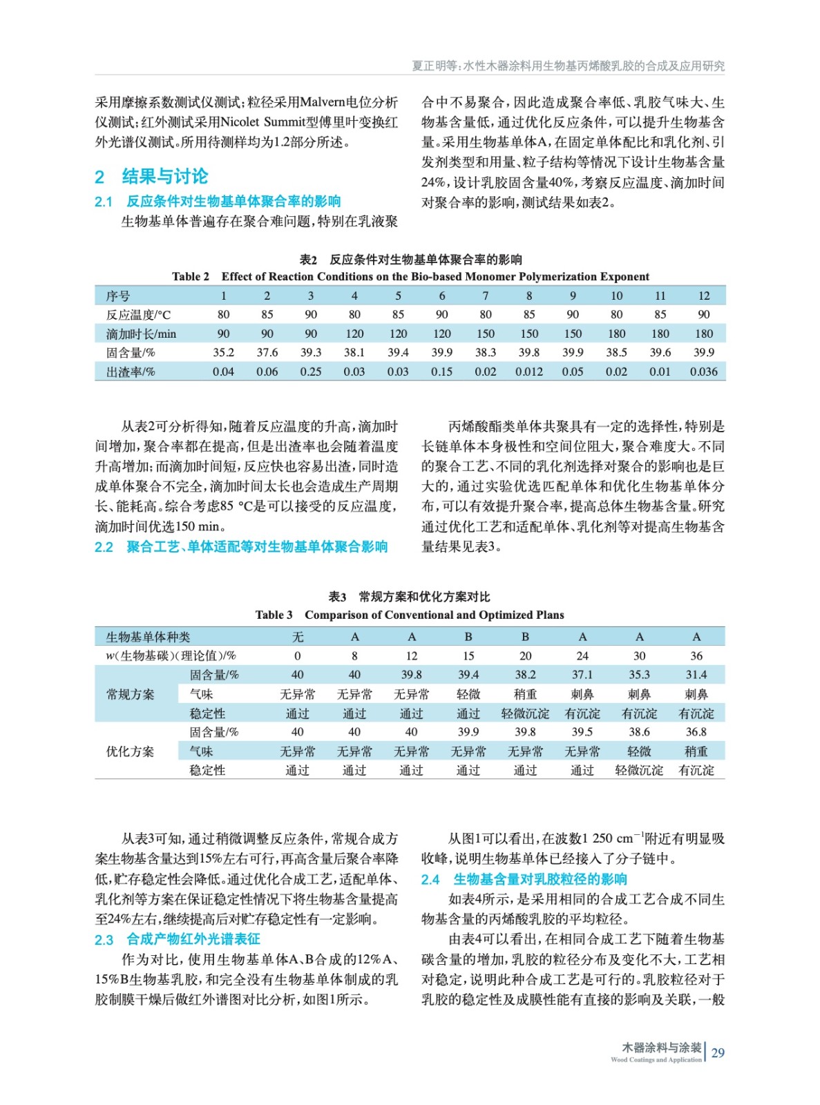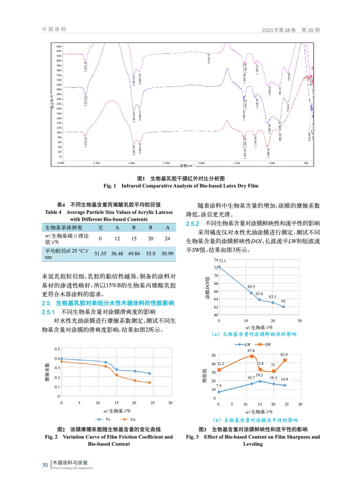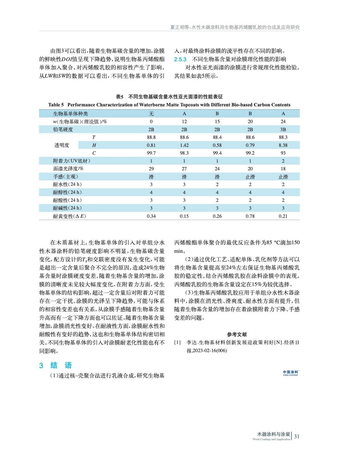 使用生物基單體合成核殼結構型丙烯酸乳膠,研究生物基丙烯酸酯類單體在合成過程中的問題,研究其在單組分水性木器涂料中應用上的性能差異。結果表明:隨著生物基含量的增加,其在消光性、滑爽度、耐水性等方面有提升,但在附著力方面略有影響。