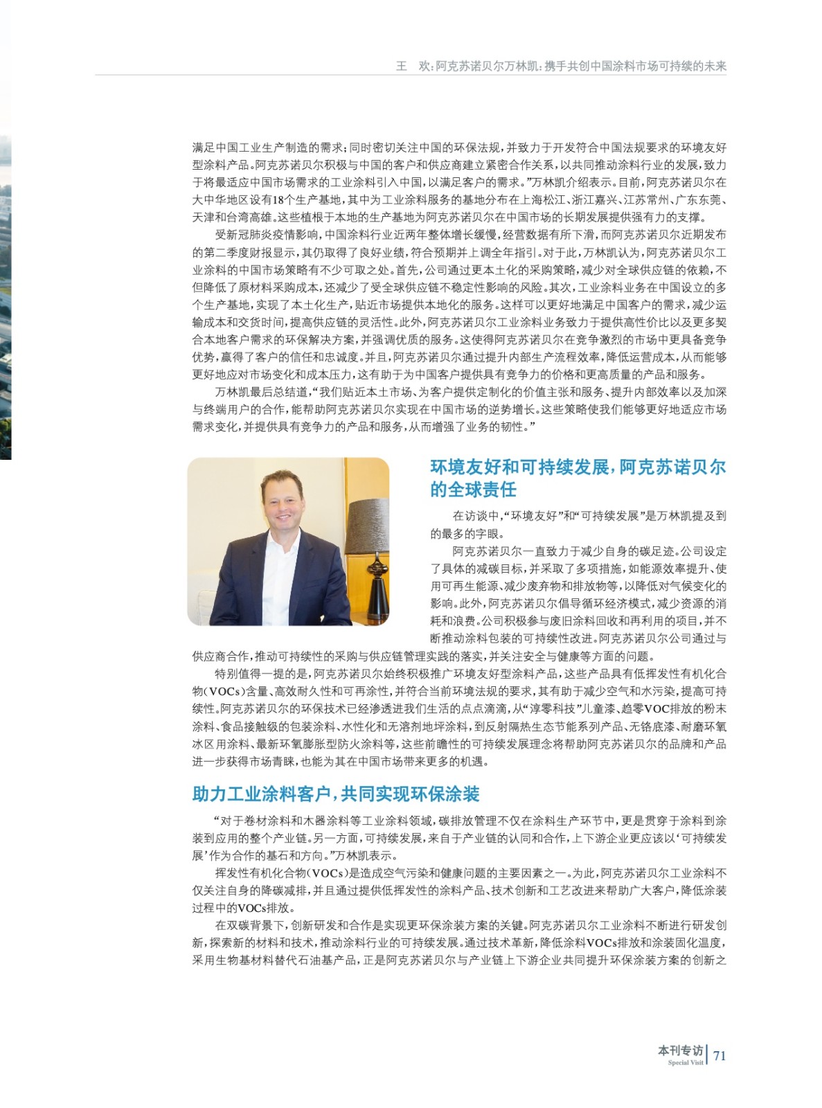 阿克蘇諾貝爾萬林凱:攜手共創(chuàng)中國涂料市場可持續(xù)的未來——專訪阿克蘇諾貝爾工業(yè)涂料亞太區(qū)董事總經(jīng)理萬林凱