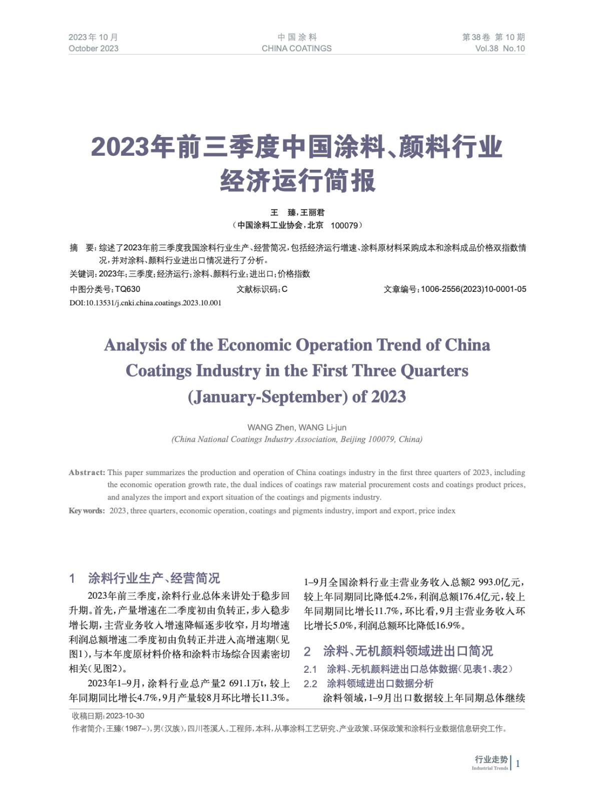 2023年前三季度中國(guó)涂料、顏料行業(yè)經(jīng)濟(jì)運(yùn)行簡(jiǎn)報(bào)