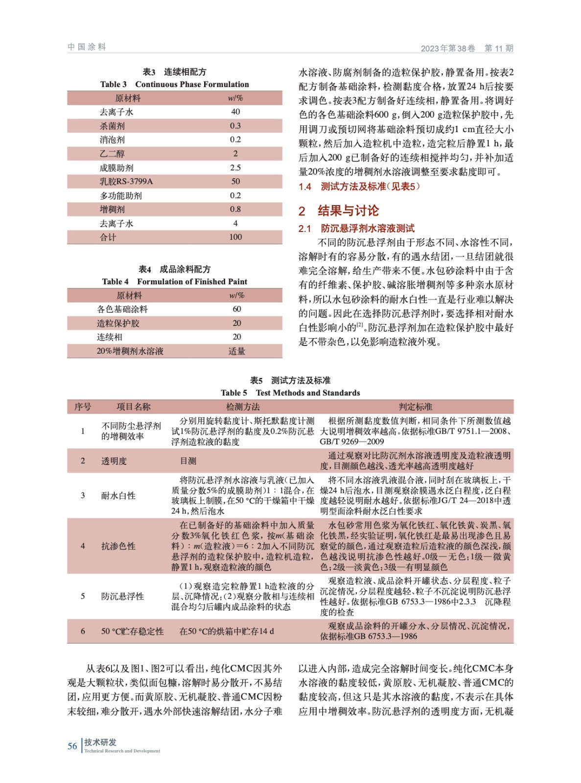摘要:通過測試不同種類的防沉懸浮劑水溶液的耐水白性、防沉懸浮劑在造粒保護(hù)膠中的增稠效果、基礎(chǔ)涂料尤其是深色基礎(chǔ)涂料加入造粒保護(hù)膠后的抗?jié)B色性及防沉懸浮性、成品涂料的加速貯存穩(wěn)定性等,優(yōu)選出了純化改性CMC作為水包砂多彩涂料的助劑時(shí),產(chǎn)品的防沉劑懸浮性最優(yōu)。