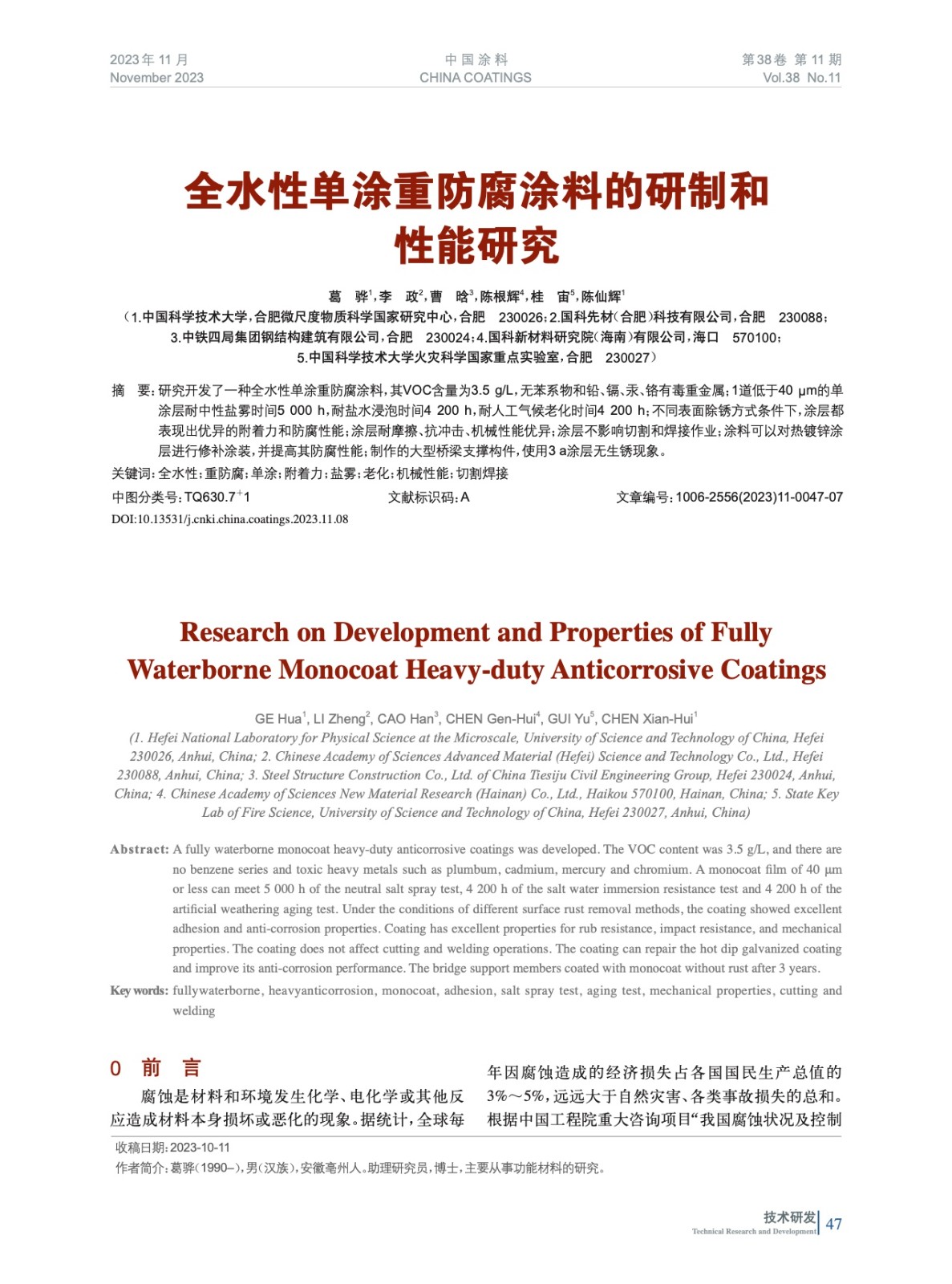 發表于2024-02-04 10:58:55| 次閱讀| 來源中國涂料| 作者葛 驊,李 政,曹 晗,陳根輝,桂 宙,陳仙輝