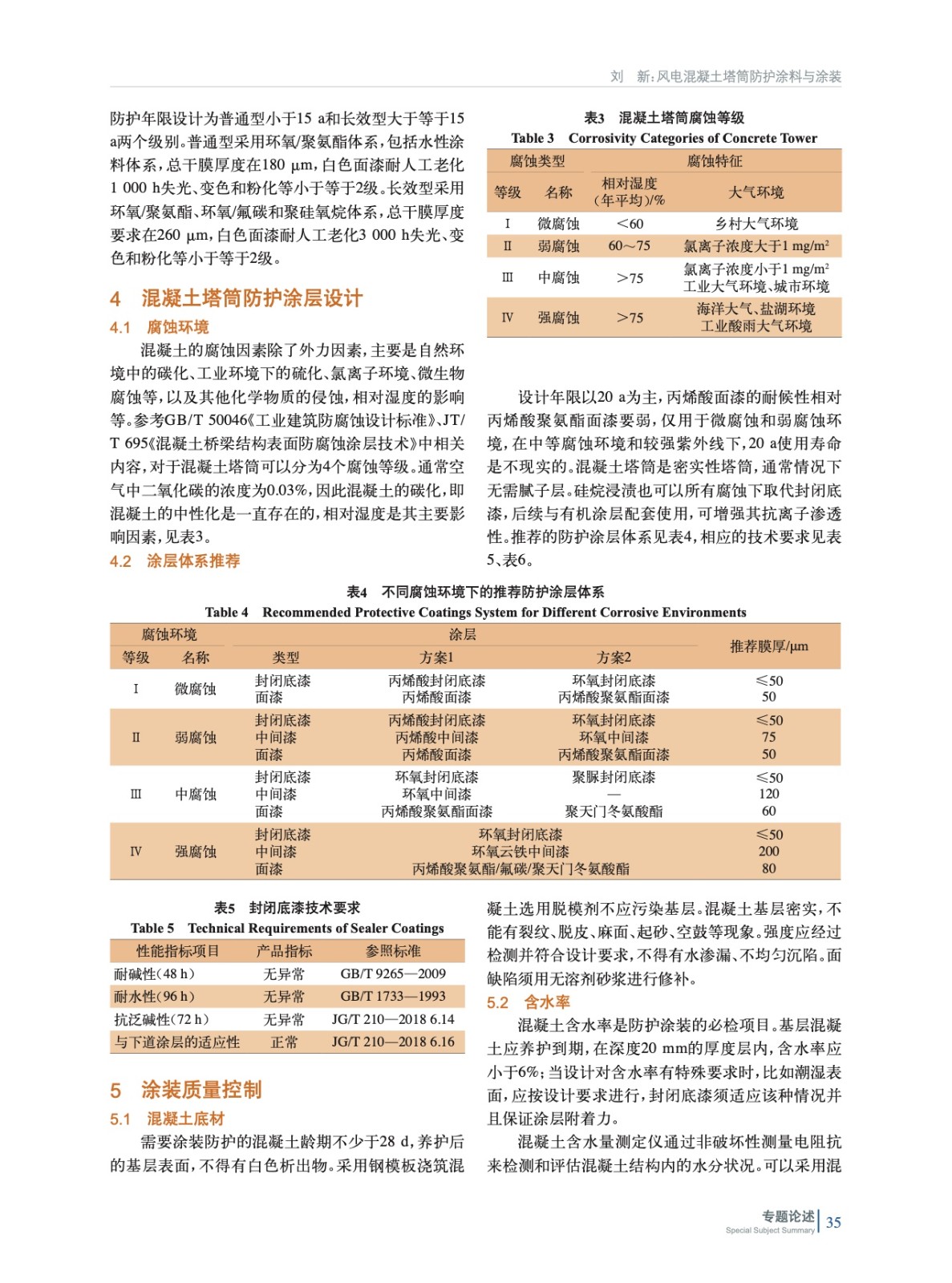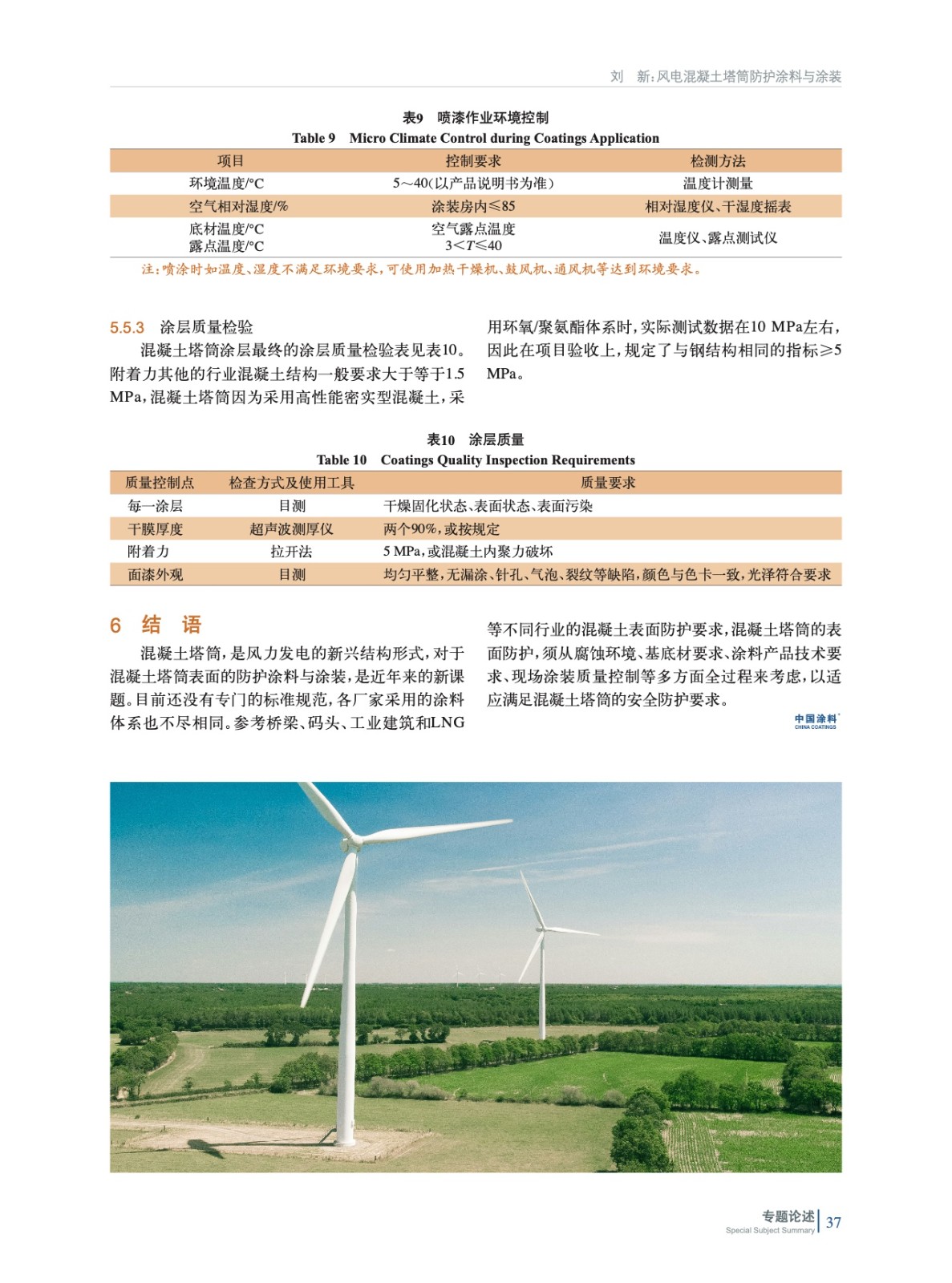 通過分析混凝土塔筒的腐蝕原理和環境特點、涂料產品技術要求,以及不同行業混凝土表面的防護標準和實踐,推薦了適合于風電混凝土塔筒的防護涂料體系,以及現場涂裝質量控制關鍵要求。