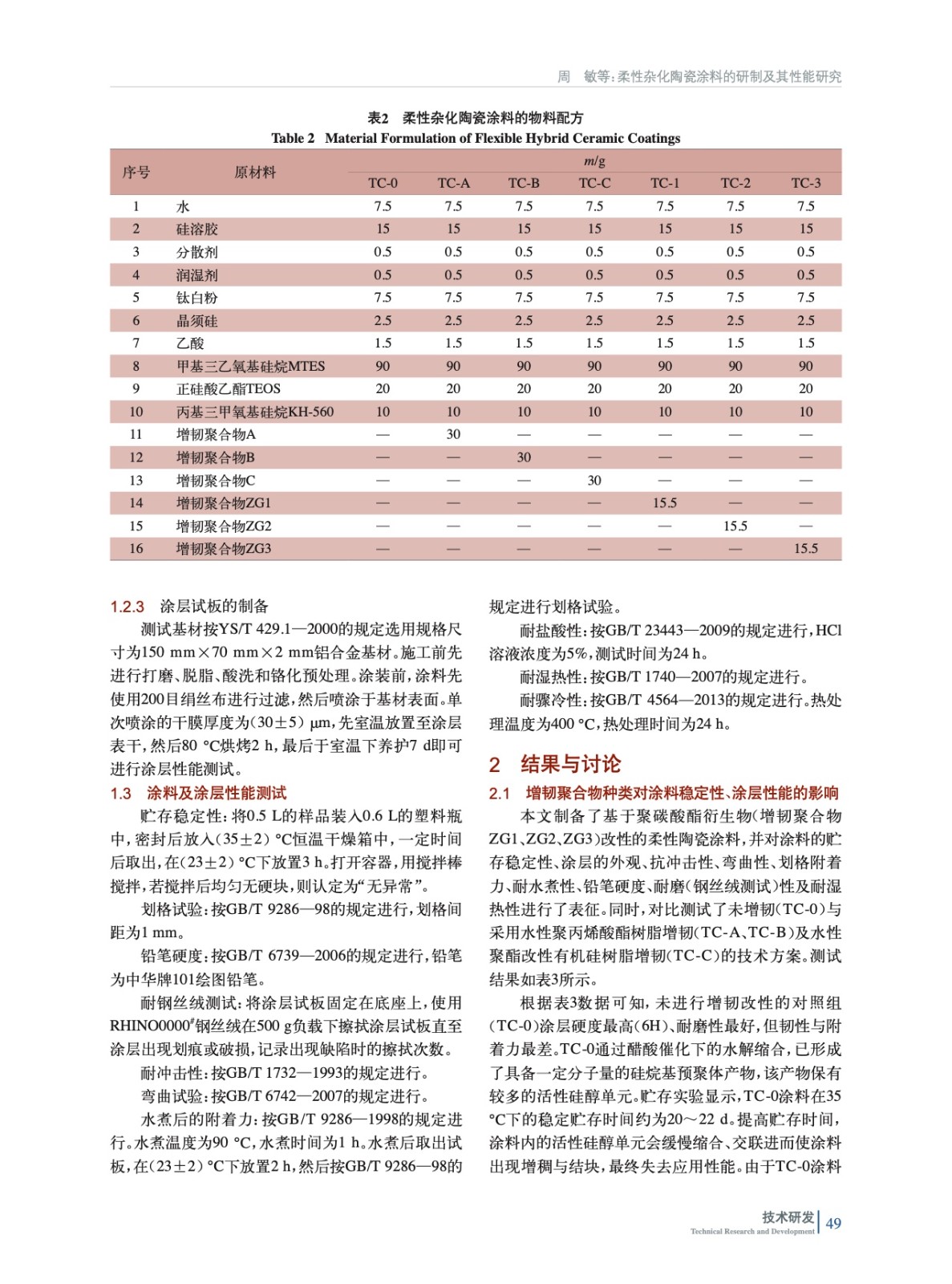 柔性雜化陶瓷涂料的研制及其性能研究