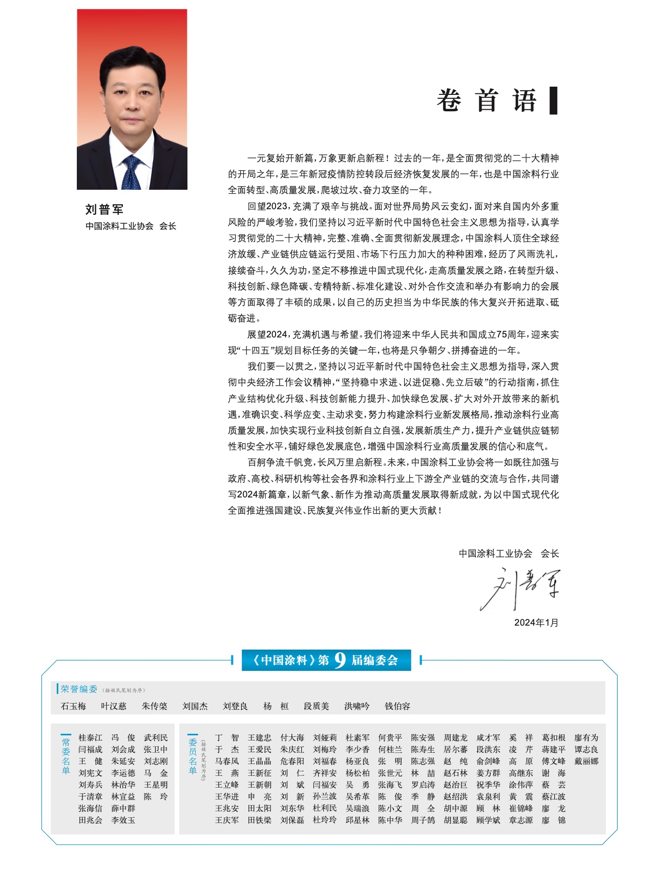 剛剛過去的2023年,是全面貫徹黨的二十大精神的開局之年,是三年新冠疫情防控轉段后經濟恢復發展的一年。我國經濟波浪式發展、曲折式前進,呈現前低、中高、后穩態勢,15660成績可圈可點,經濟社會發展主要預期目標圓滿實現。中國涂料工業協會政策法規工作委員會將2023年國家和地方出臺的與涂料和涂裝相關的政策法規進行了梳理和匯總,將政策中關于涂料工業的內容原文摘錄,并由行業內的專家進行了解讀,以便行業同仁及時掌握政策動態和要點,從而精準把握機遇,實現穩定向好發展。