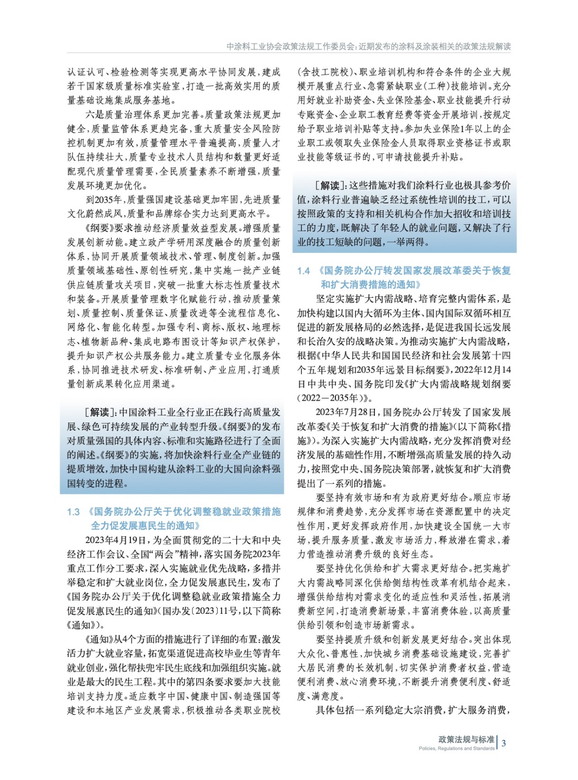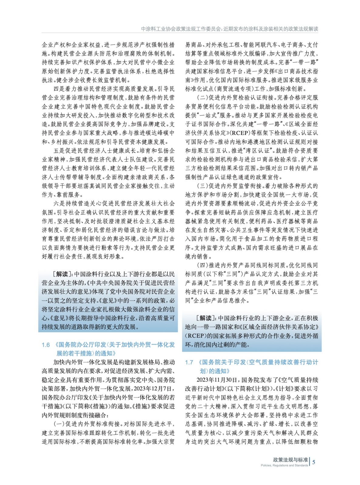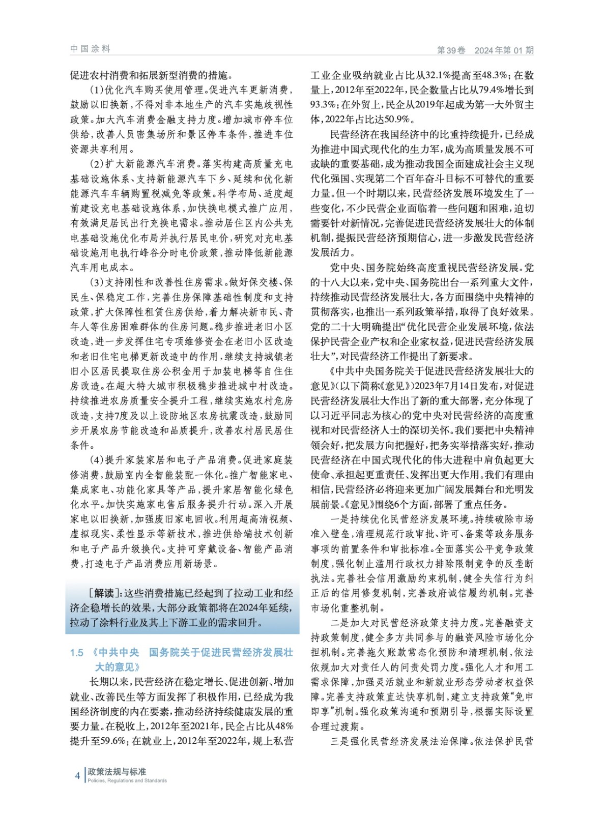 摘要:剛剛過去的2023年,是全面貫徹黨的二十大精神的開局之年,是三年新冠疫情防控轉段后經濟恢復發展的一年。我國經濟波浪式發展、曲折式前進,呈現前低、中高、后穩態勢,15660成績可圈可點,經濟社會發展主要預期目標圓滿實現。中國涂料工業協會政策法規工作委員會將2023年國家和地方出臺的與涂料和涂裝相關的政策法規進行了梳理和匯總,將政策中關于涂料工業的內容原文摘錄,并由行業內的專家進行了解讀,以便行業同仁及時掌握政策動態和要點,從而精準把握機遇,實現穩定向好發展。