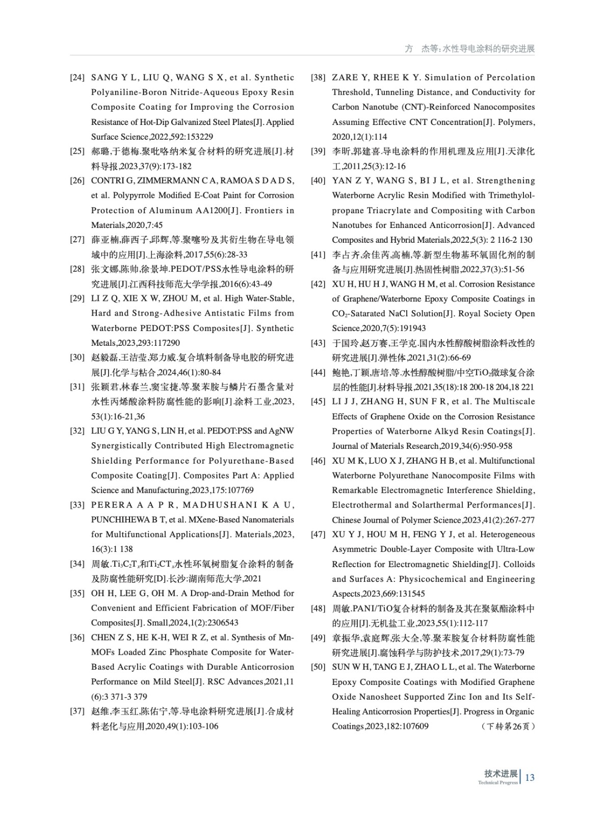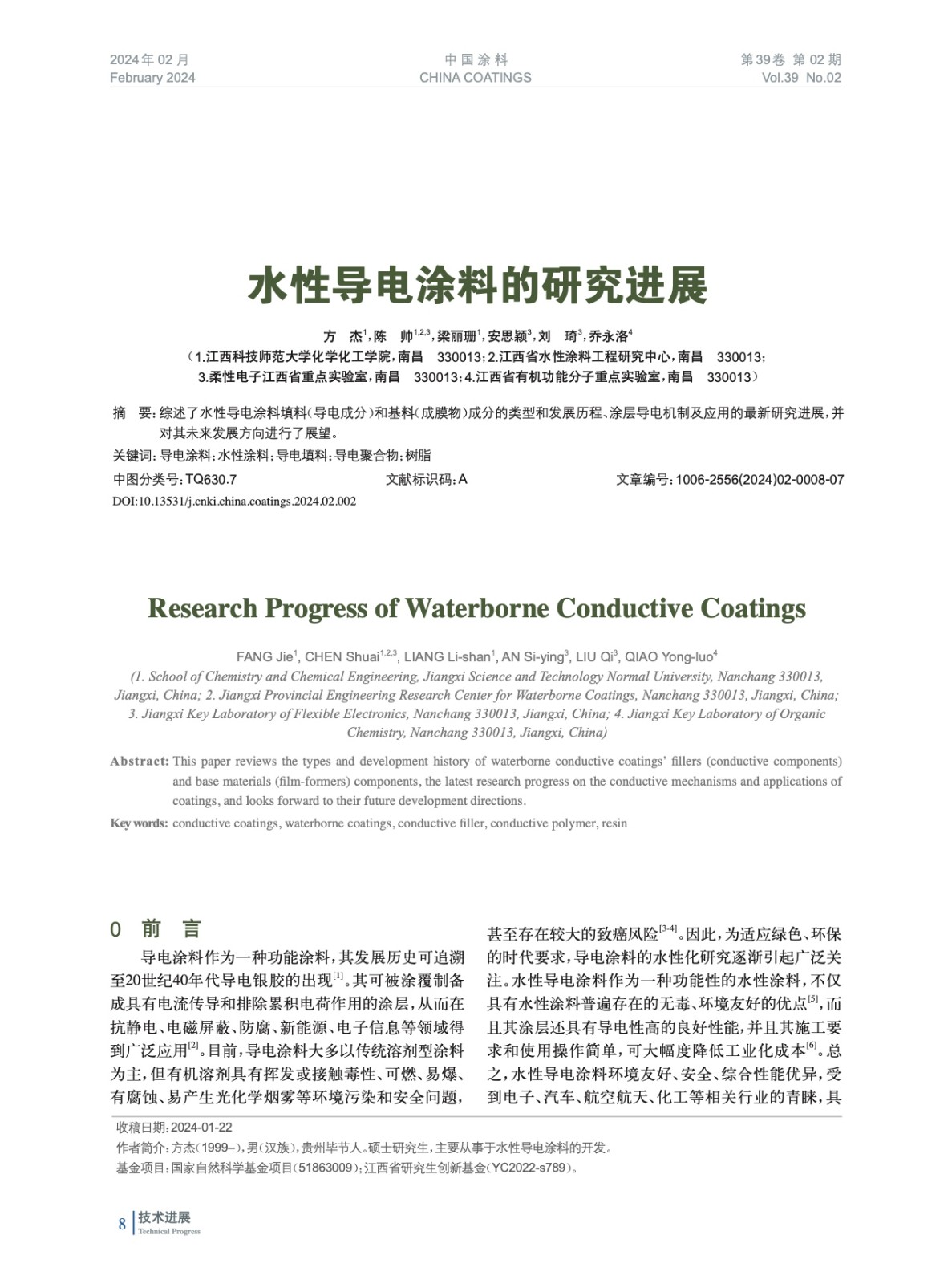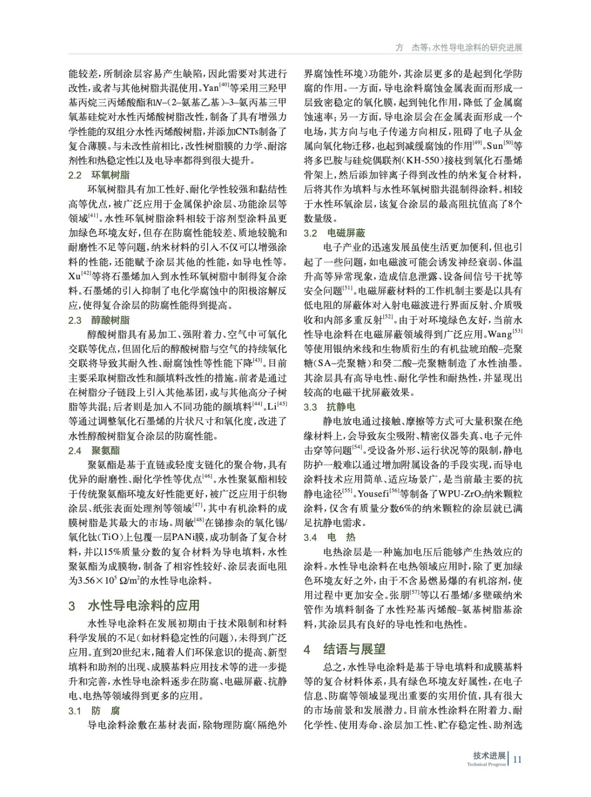 綜述了水性導電涂料填料(導電成分)和基料(成膜物)成分的類型和發展歷程、涂層導電機制及應用的最新研究進展,并對其未來發展方向進行了展望。