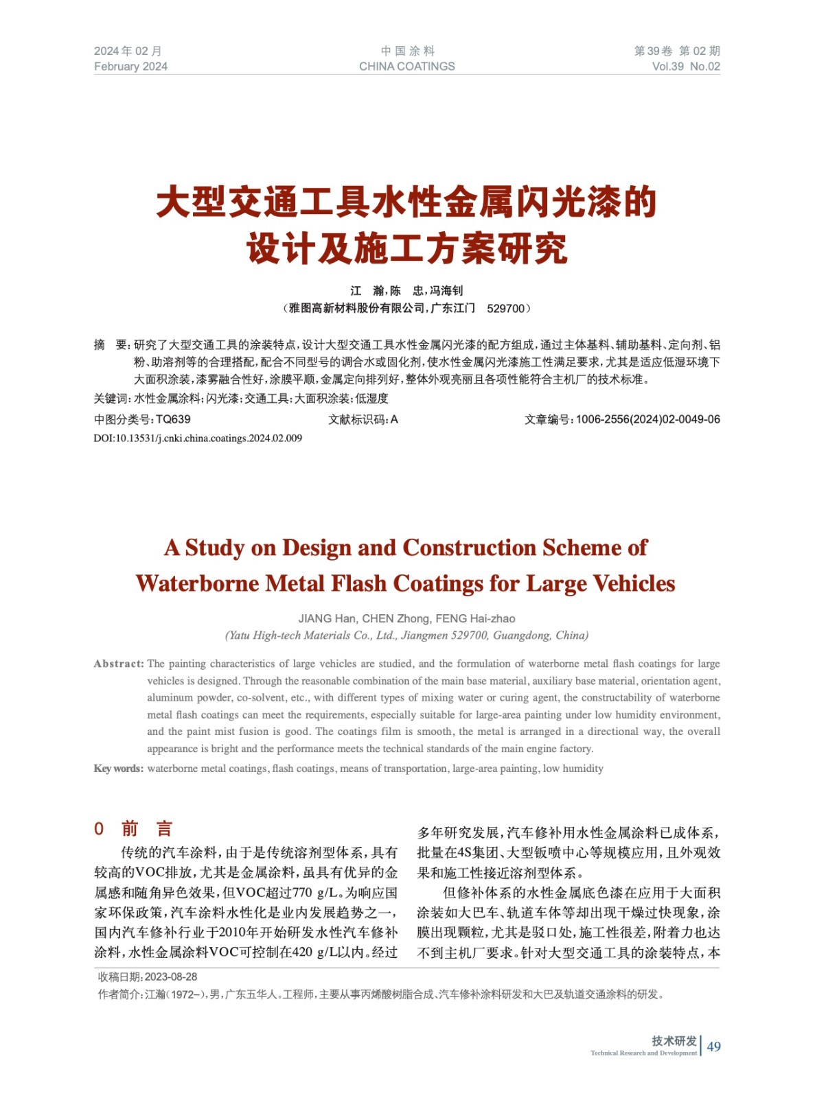 發表于2024-04-25 16:58:16| 次閱讀| 來源中國涂料| 作者江 瀚,陳 忠,馮海釗