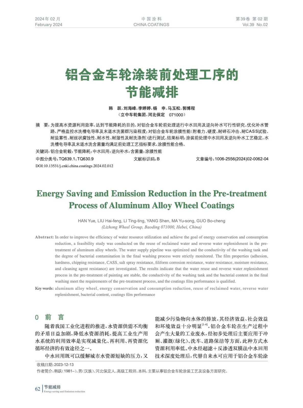 鋁合金車輪涂裝前處理工序的節能減排