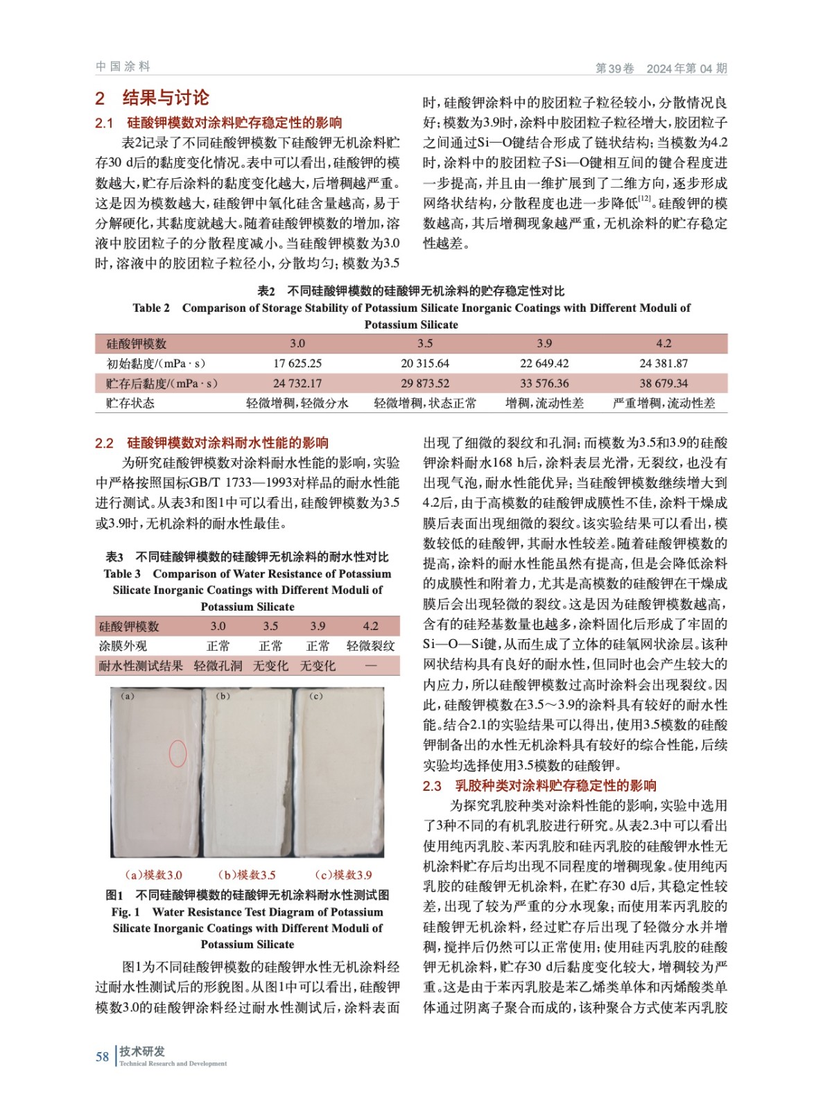 硅酸鉀水性無機涂料的貯存穩定性及耐水性能的研究