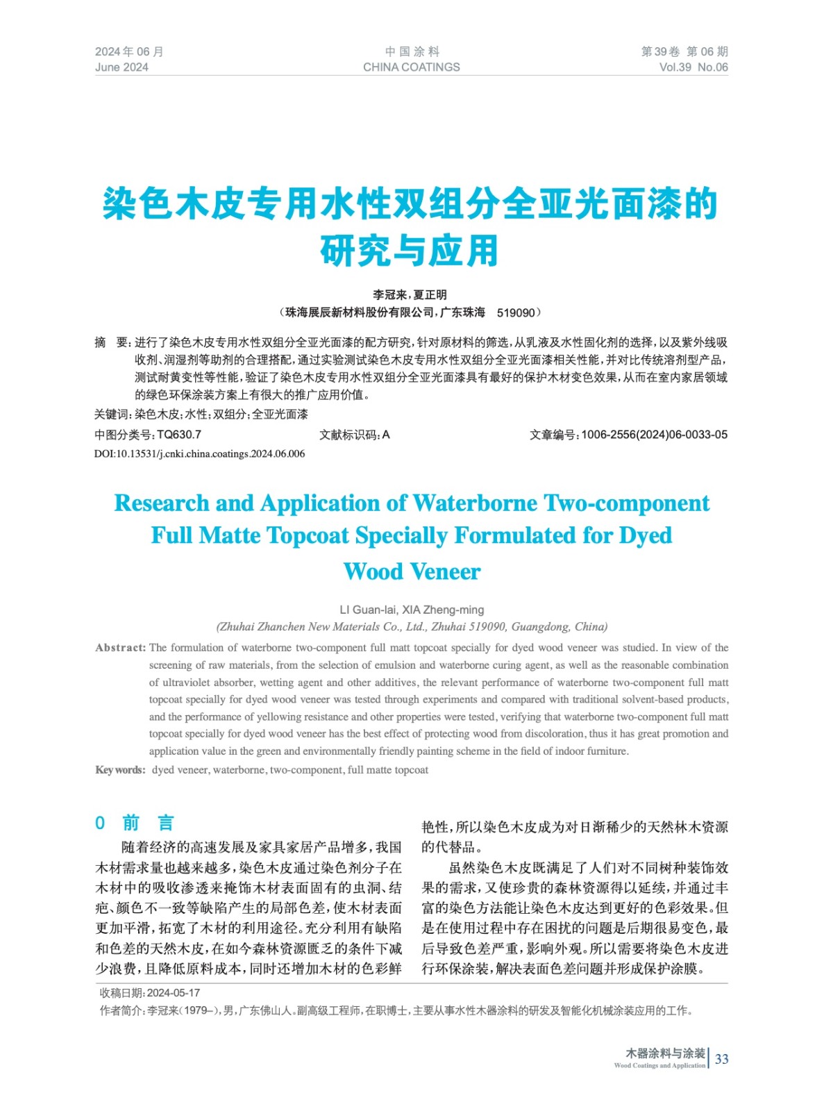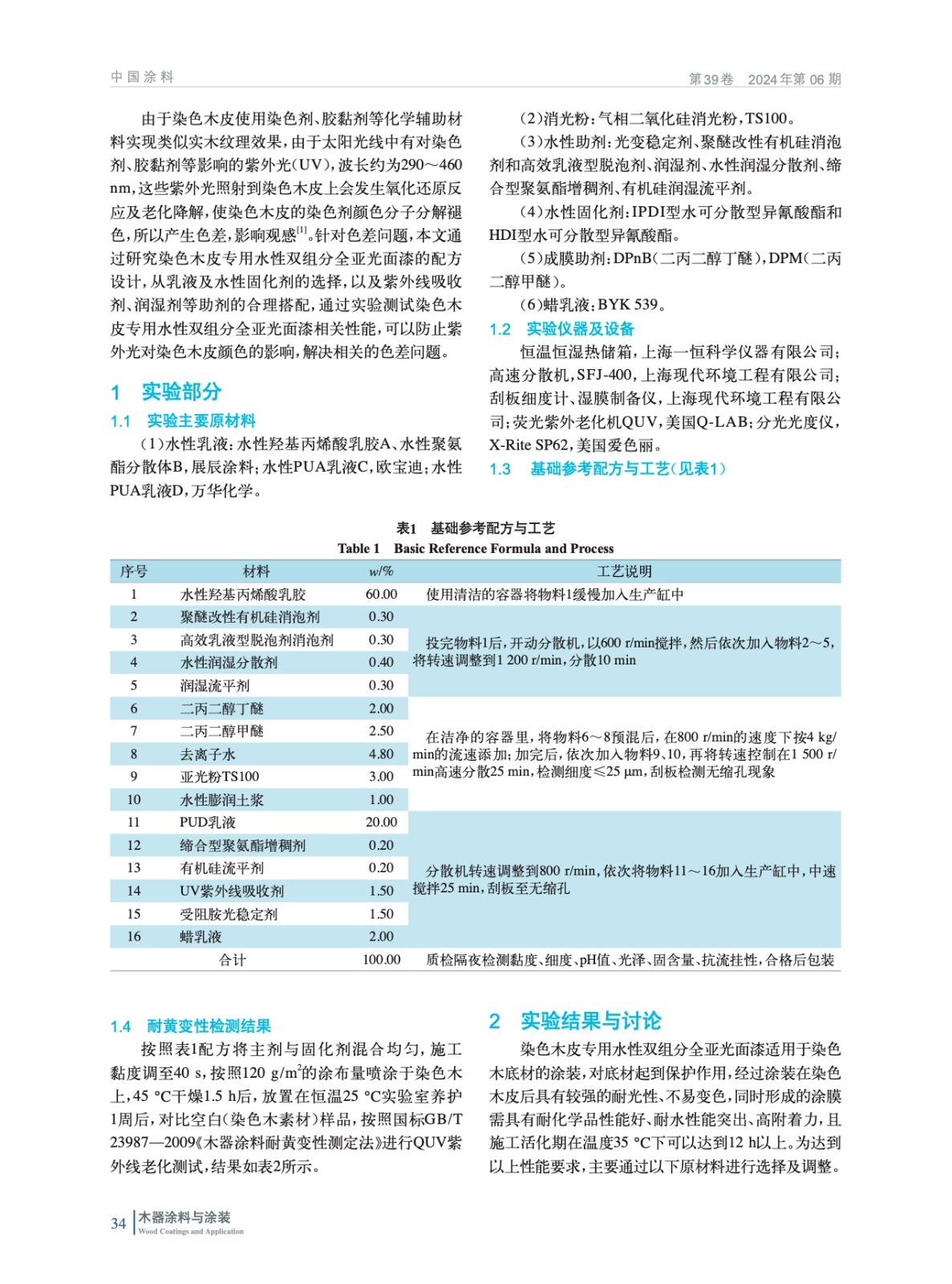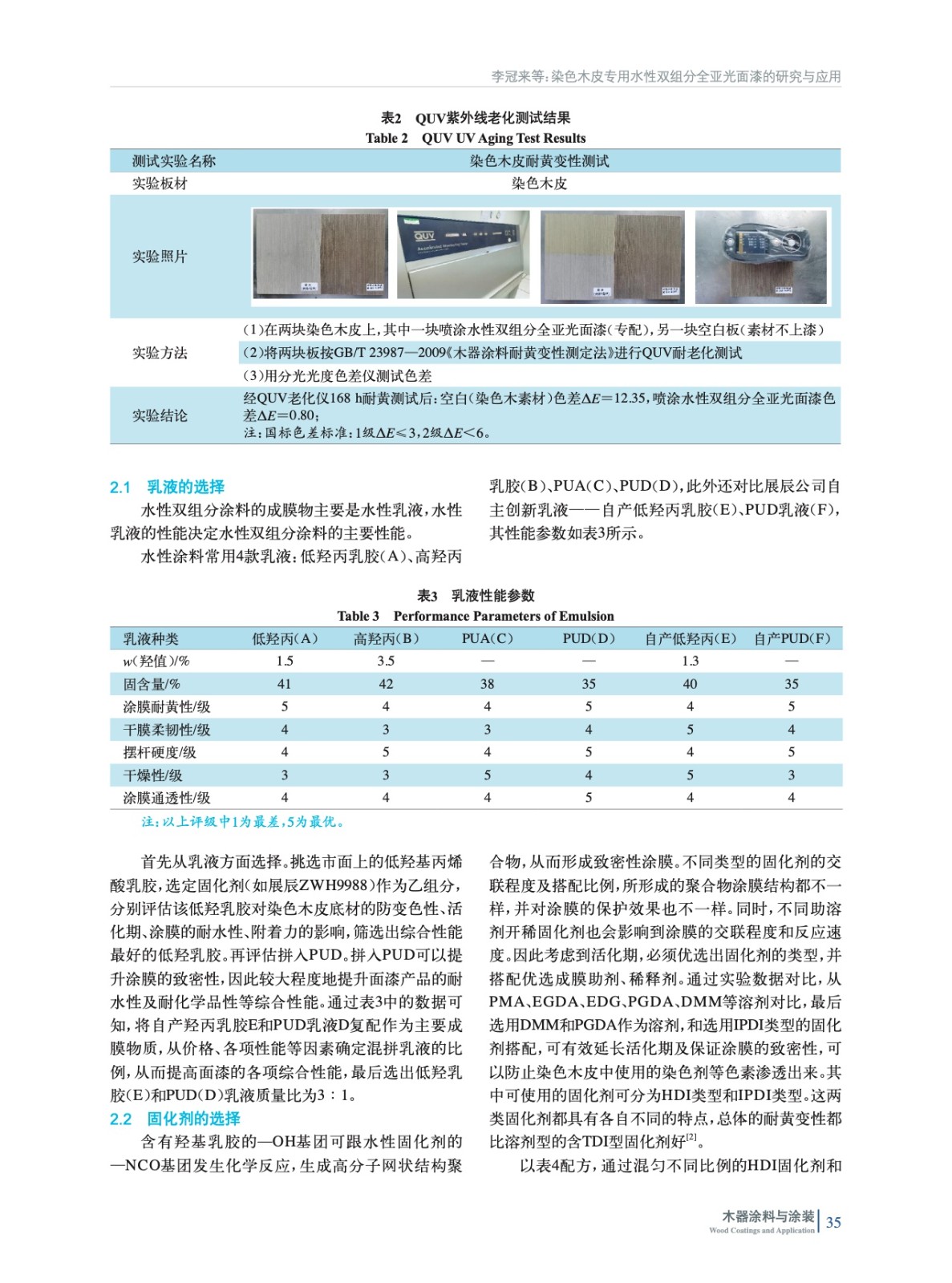 染色木皮專用水性雙組分全亞光面漆的研究與應用