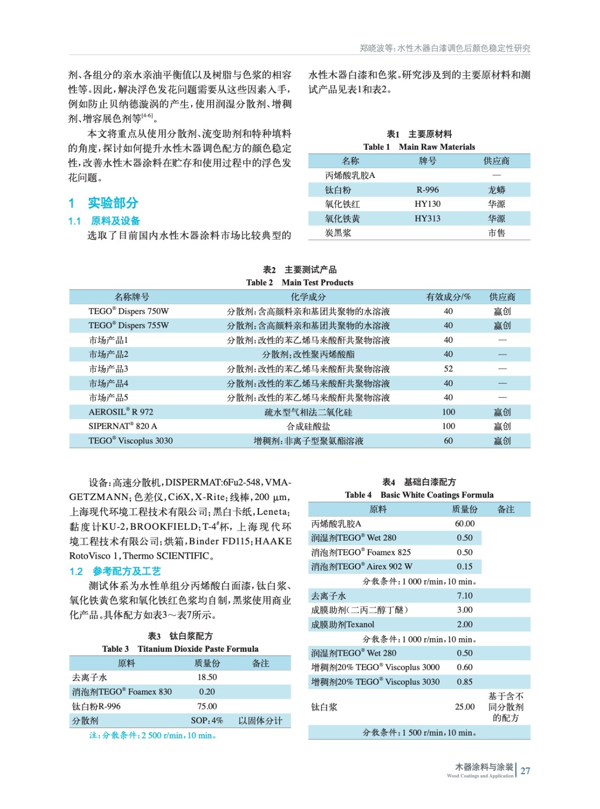 水性木器白漆調色后顏色穩定性研究