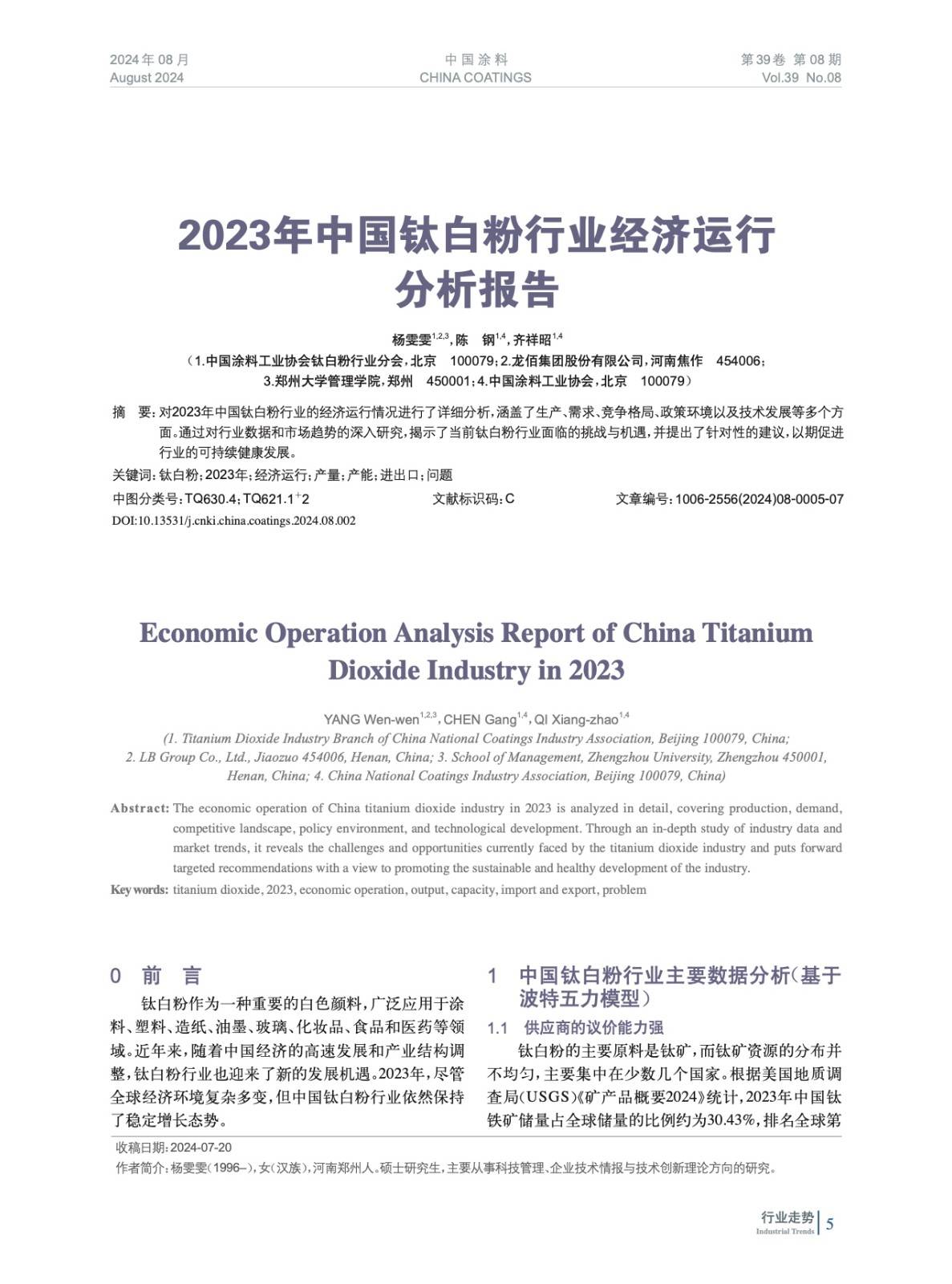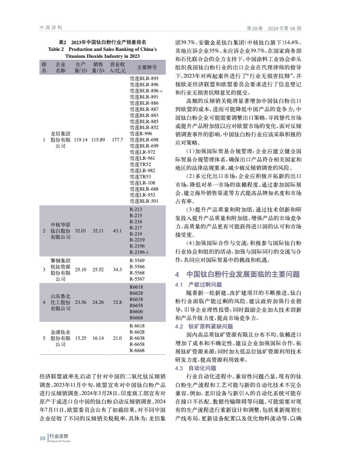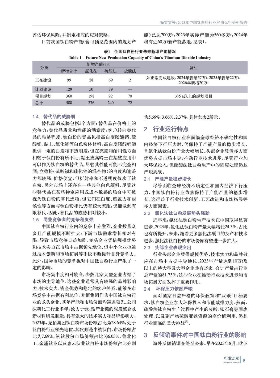 2023年中國鈦白粉行業(yè)經(jīng)濟(jì)運(yùn)行分析報告