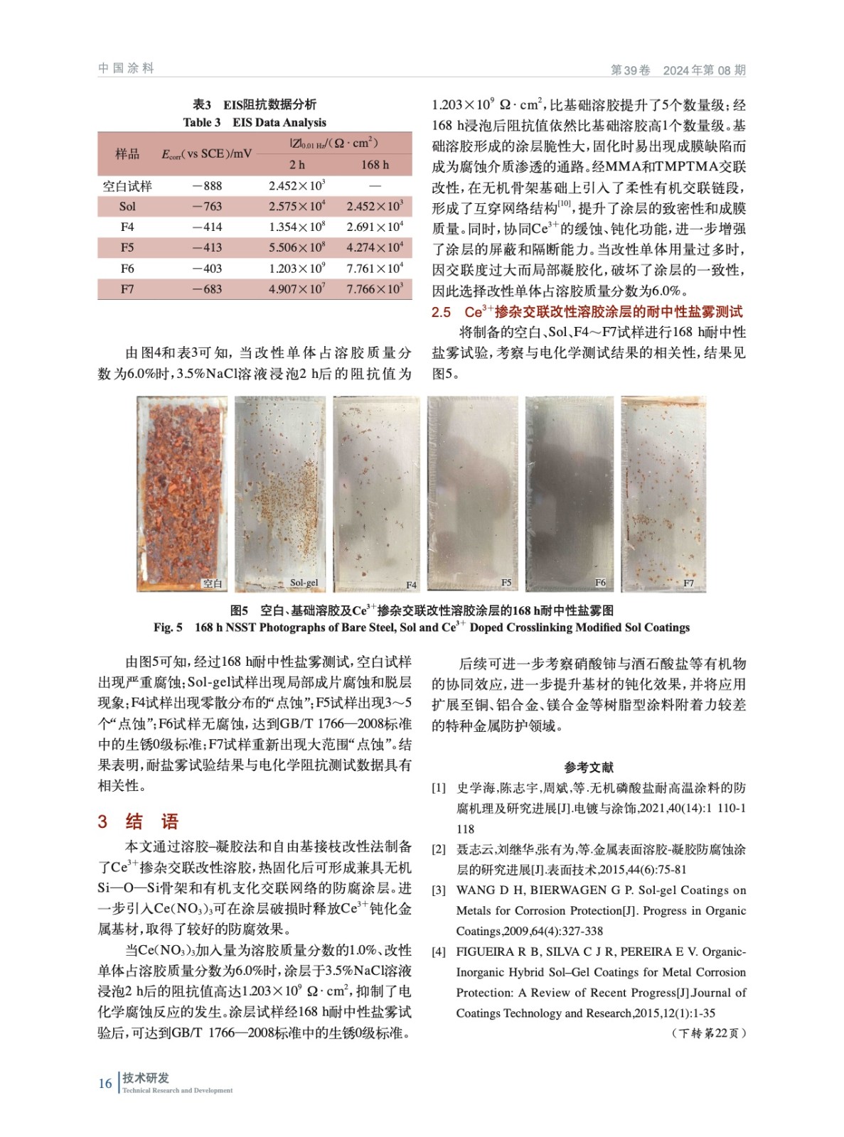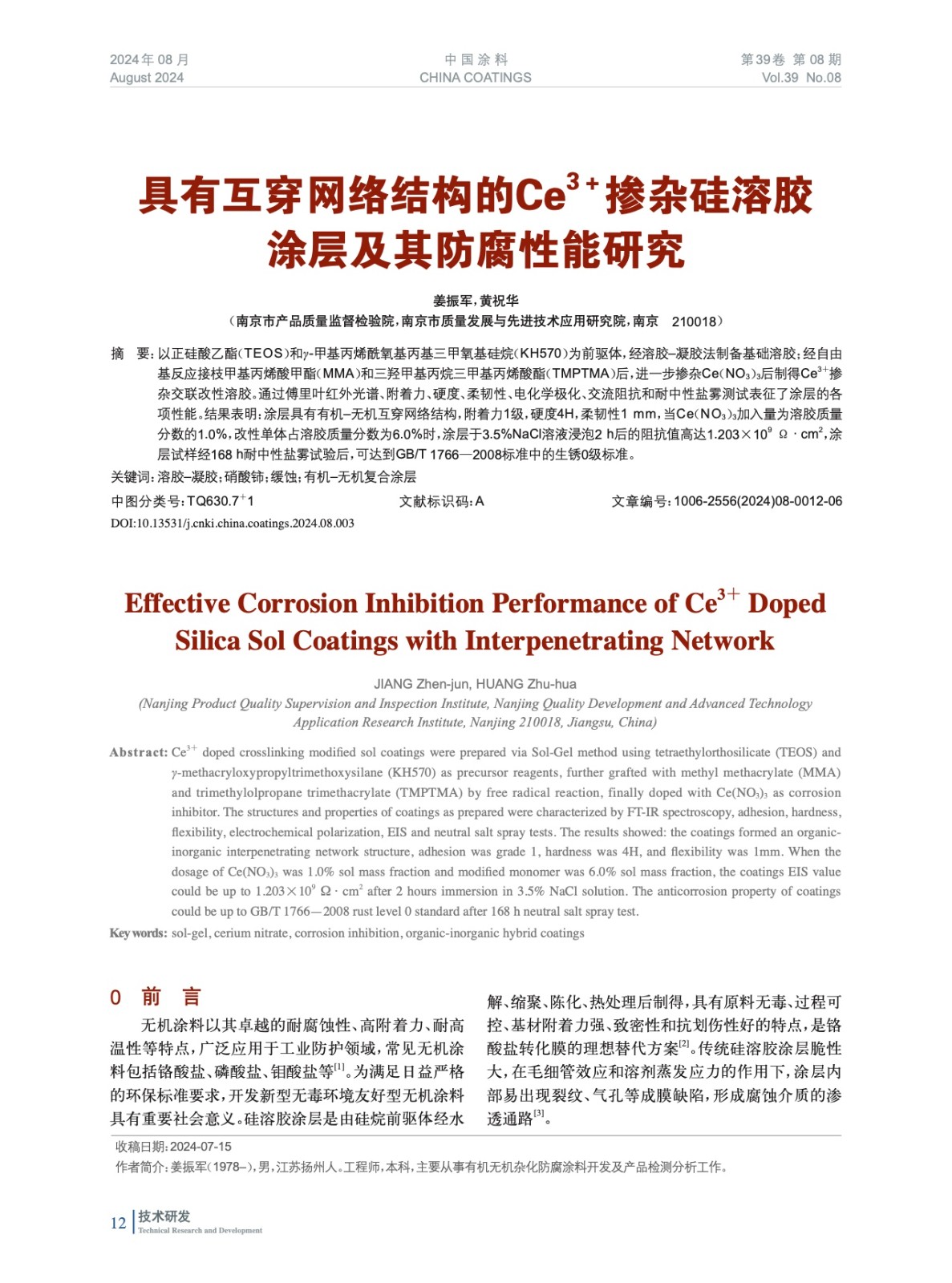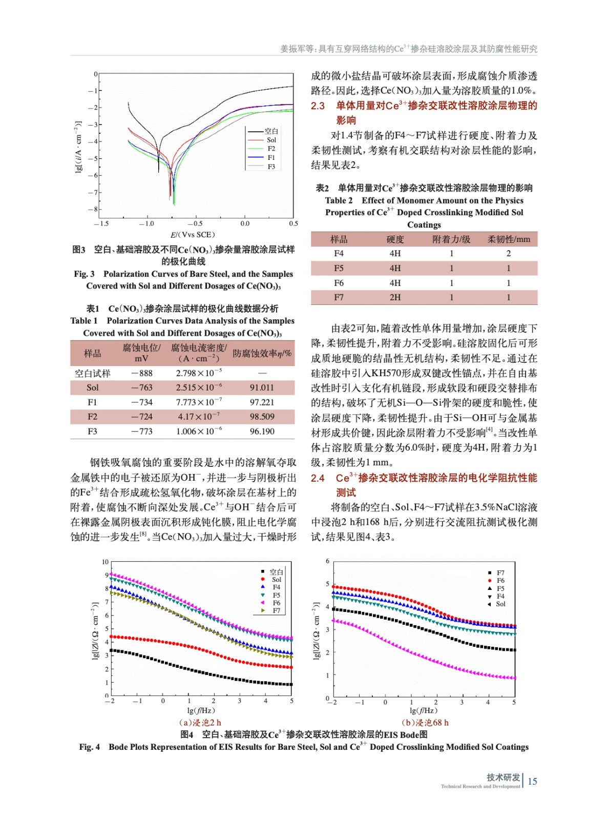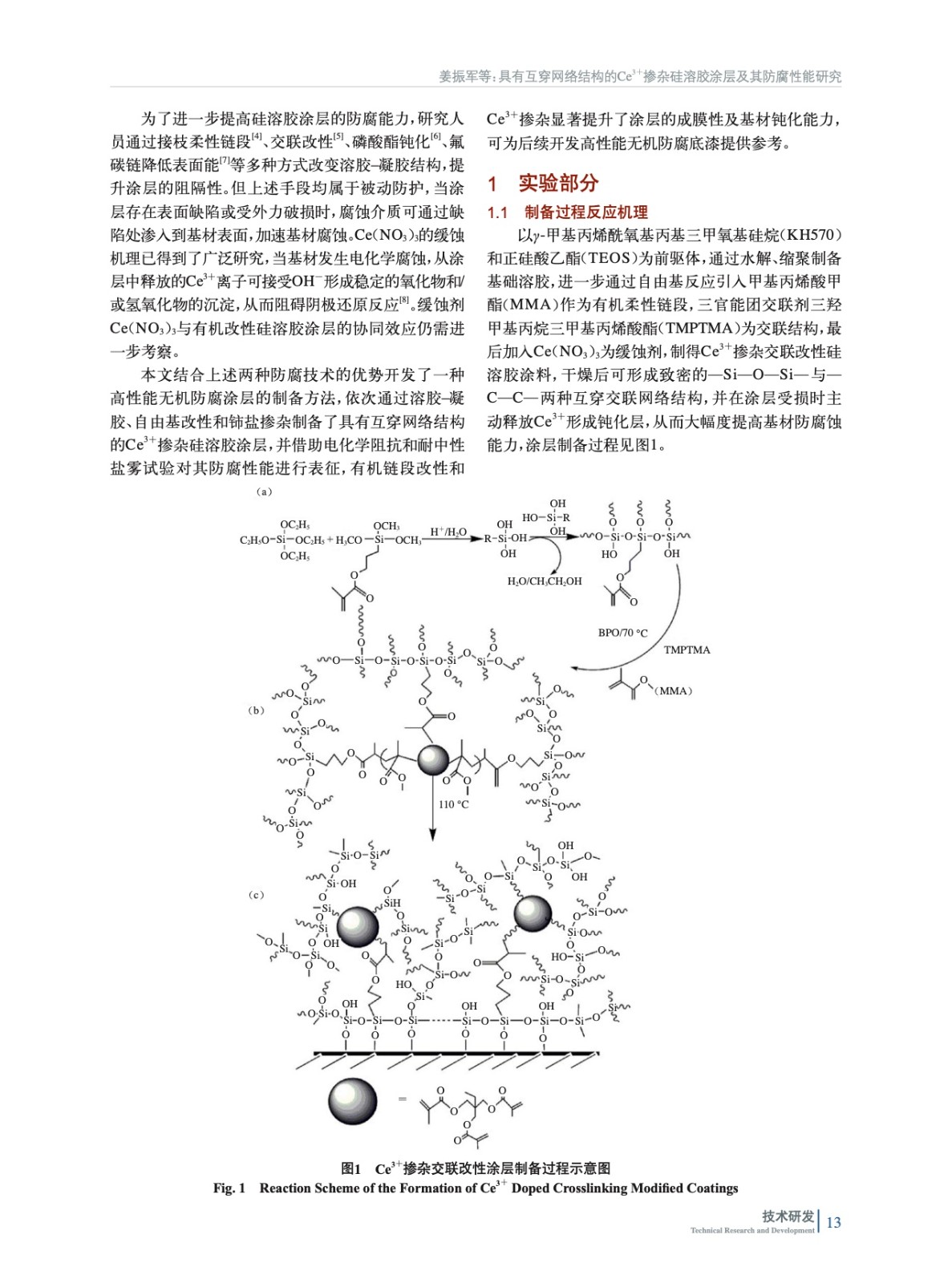 具有互穿網絡結構的Ce3+摻雜硅溶膠涂層及其防腐性能研究