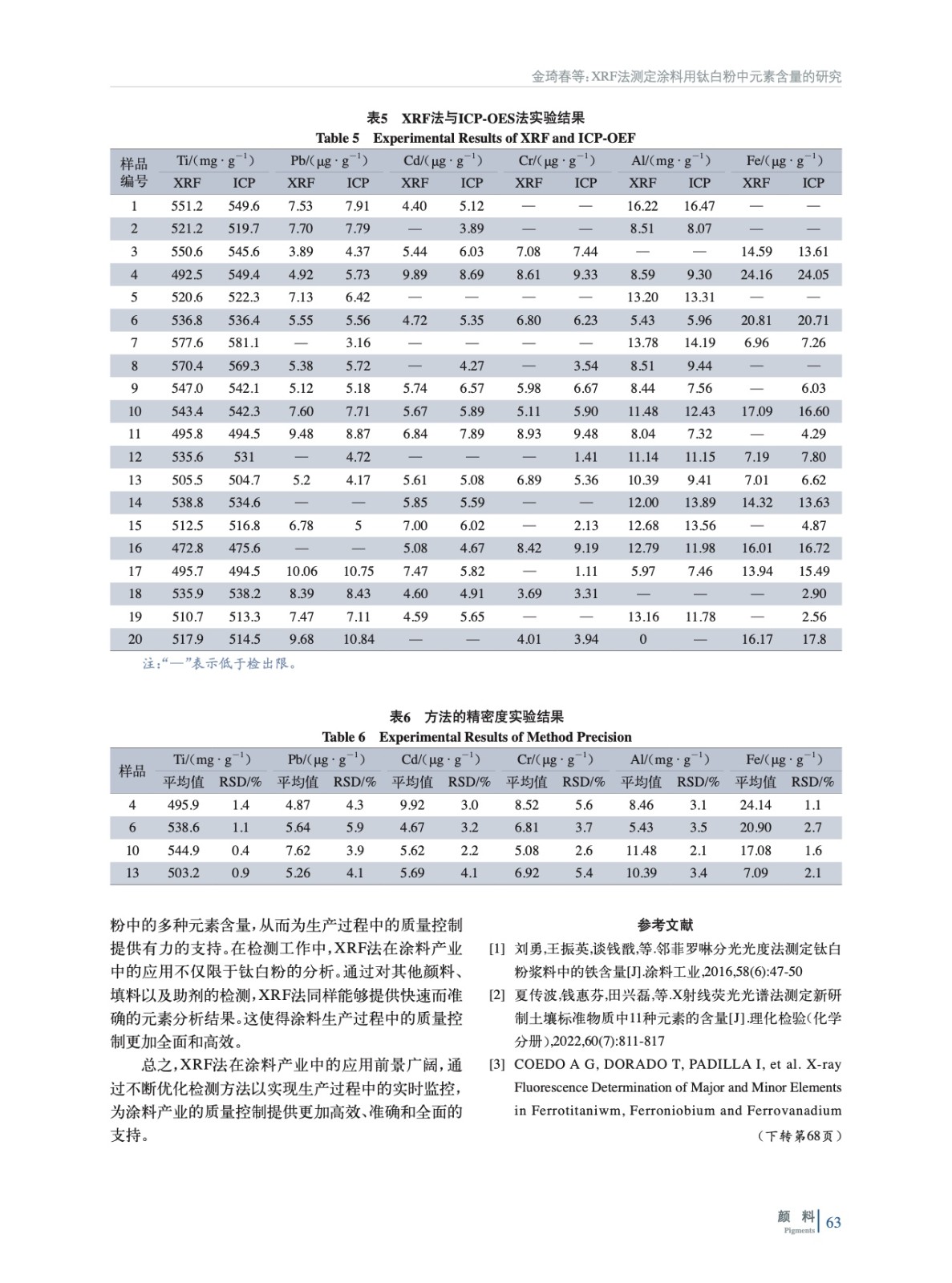 XRF法測定涂料用鈦白粉中元素含量的研究