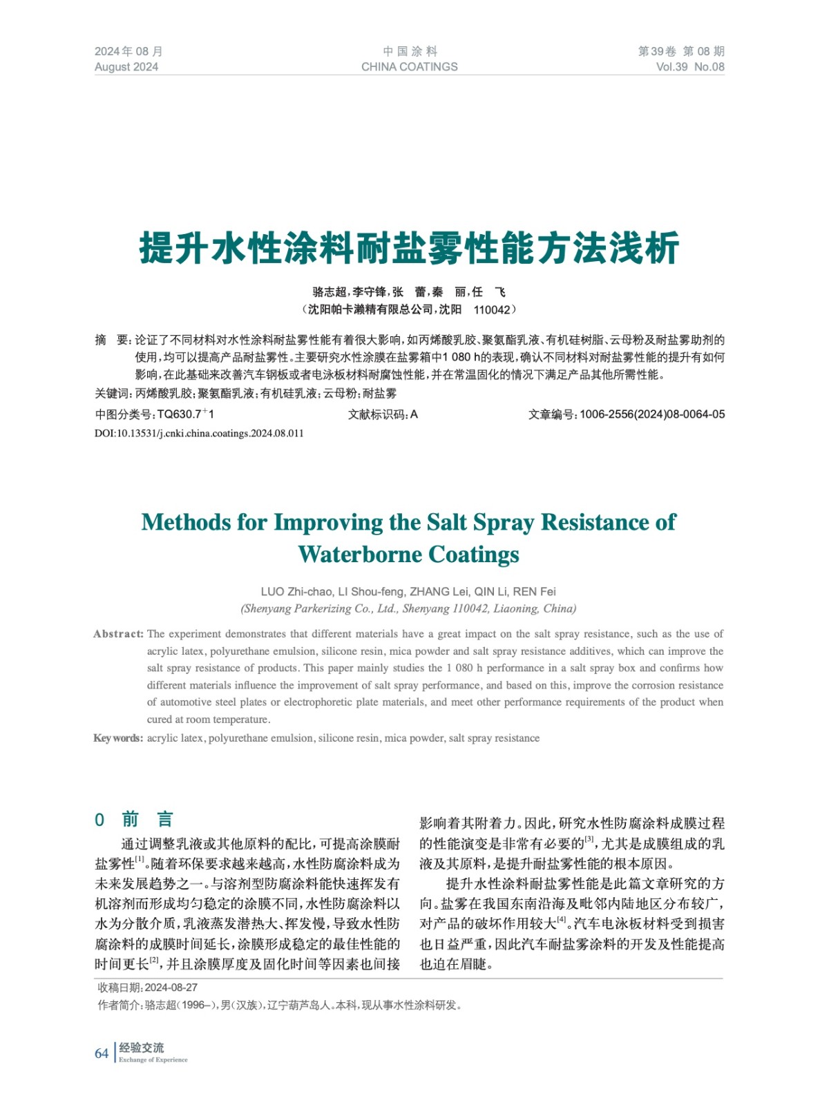 本文系作者@駱志超,李守鋒,張 蕾,秦 麗,任 飛 授權中國涂料網發表,并經中國涂料網編輯,未經允許不得轉載,如需轉載請聯系chinacoatingnet@vip.163.com