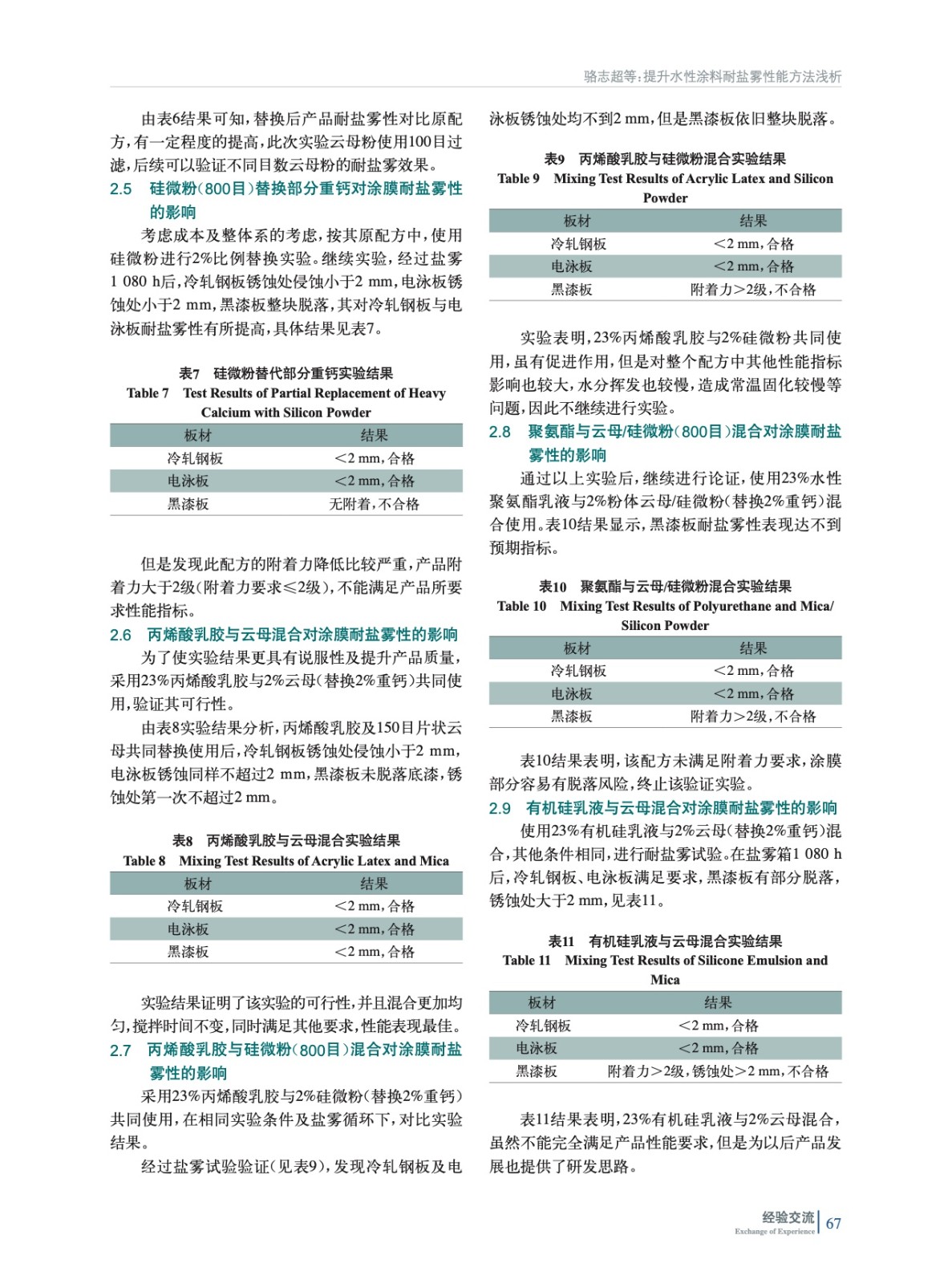 摘要:論證了不同材料對水性涂料耐鹽霧性能有著很大影響,如丙烯酸乳膠、聚氨酯乳液、有機硅樹脂、云母粉及耐鹽霧助劑的使用,均可以提高產品耐鹽霧性。主要研究水性涂膜在鹽霧箱中1 080 h的表現,確認不同材料對耐鹽霧性能的提升有如何影響,在此基礎來改善汽車鋼板或者電泳板材料耐腐蝕性能,并在常溫固化的情況下滿足產品其他所需性能。