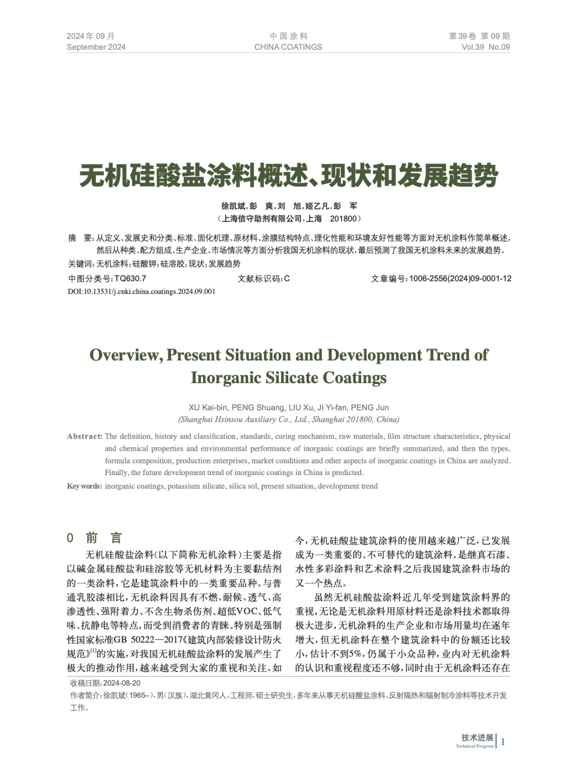 本文系作者@徐凱斌,彭 爽,劉 旭,姬乙凡,彭 軍 授權中國涂料網發表,并經中國涂料網編輯,未經允許不得轉載,如需轉載請聯系chinacoatingnet@vip.163.com