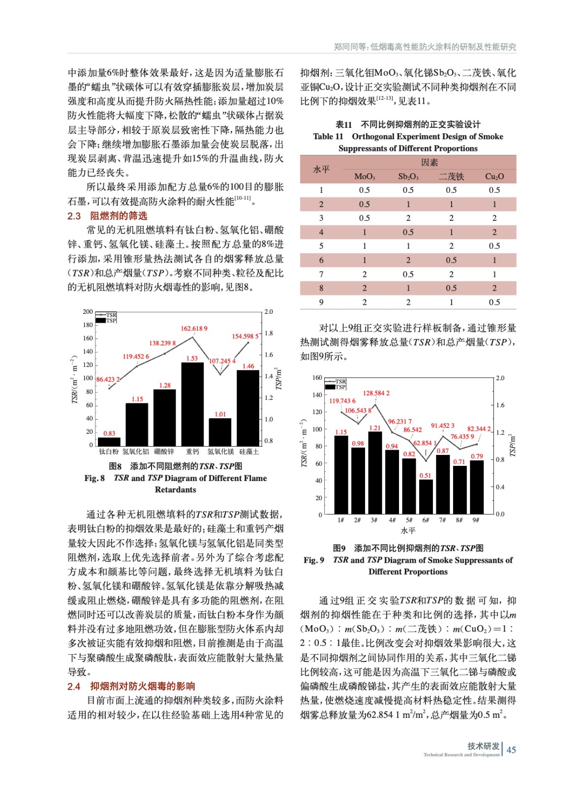 低煙毒高性能防火涂料的研制及性能研究