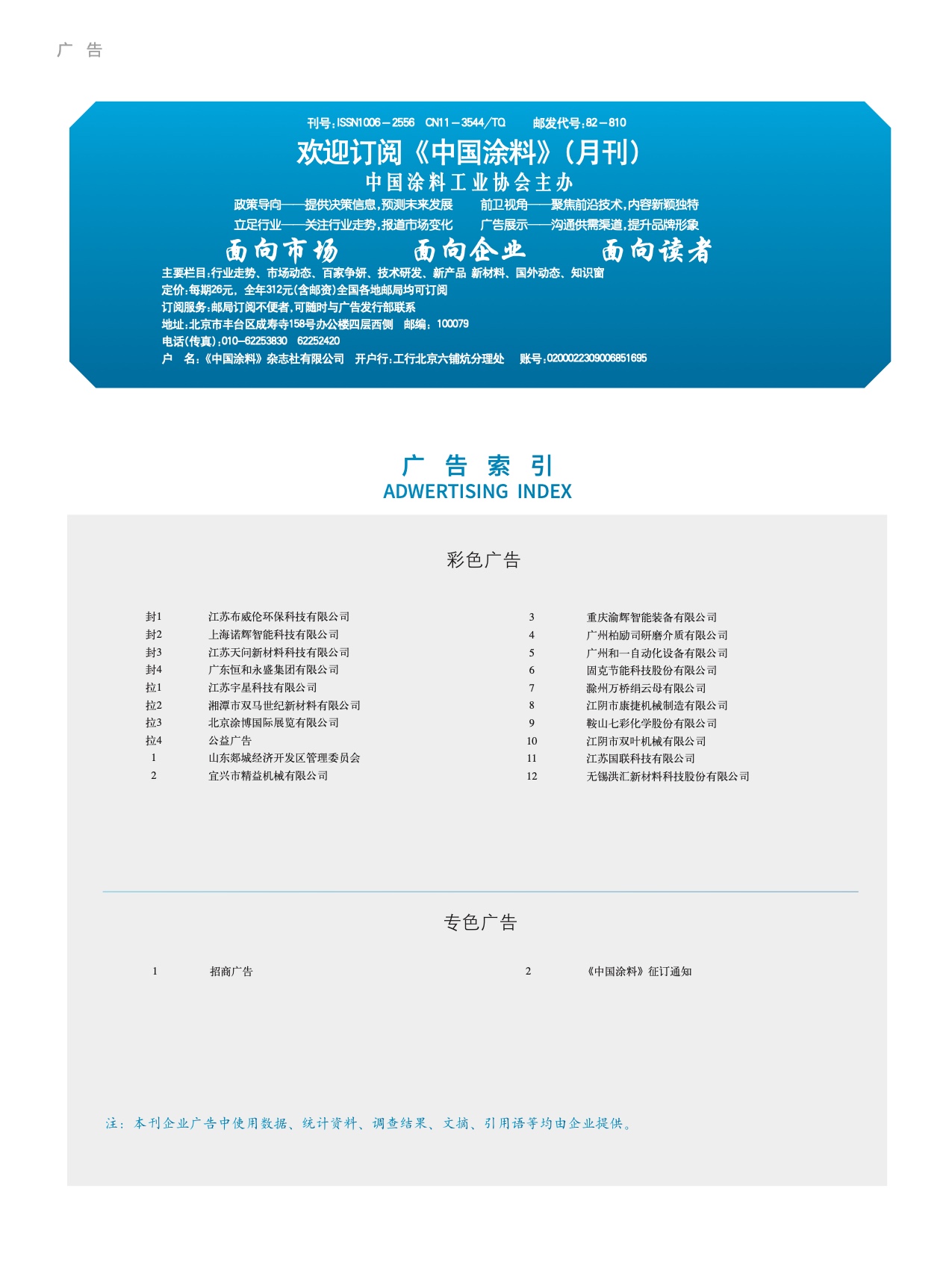 招商廣告、《中國涂料》征訂通知