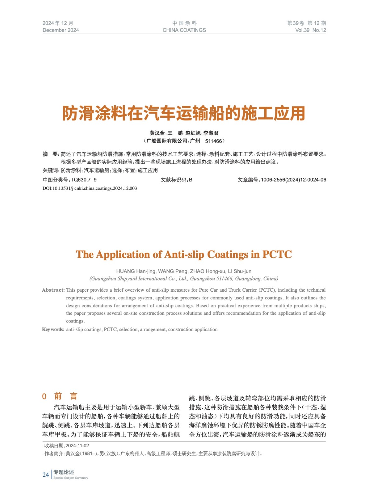簡述了汽車運輸船防滑措施,常用防滑涂料的技術工藝要求、選擇、涂料配套、施工工藝、設計過程中防滑涂料布置要求。根據多型產品船的實際應用經驗,提出一些現場施工流程的處理辦法,對防滑涂料的應用給出建議。