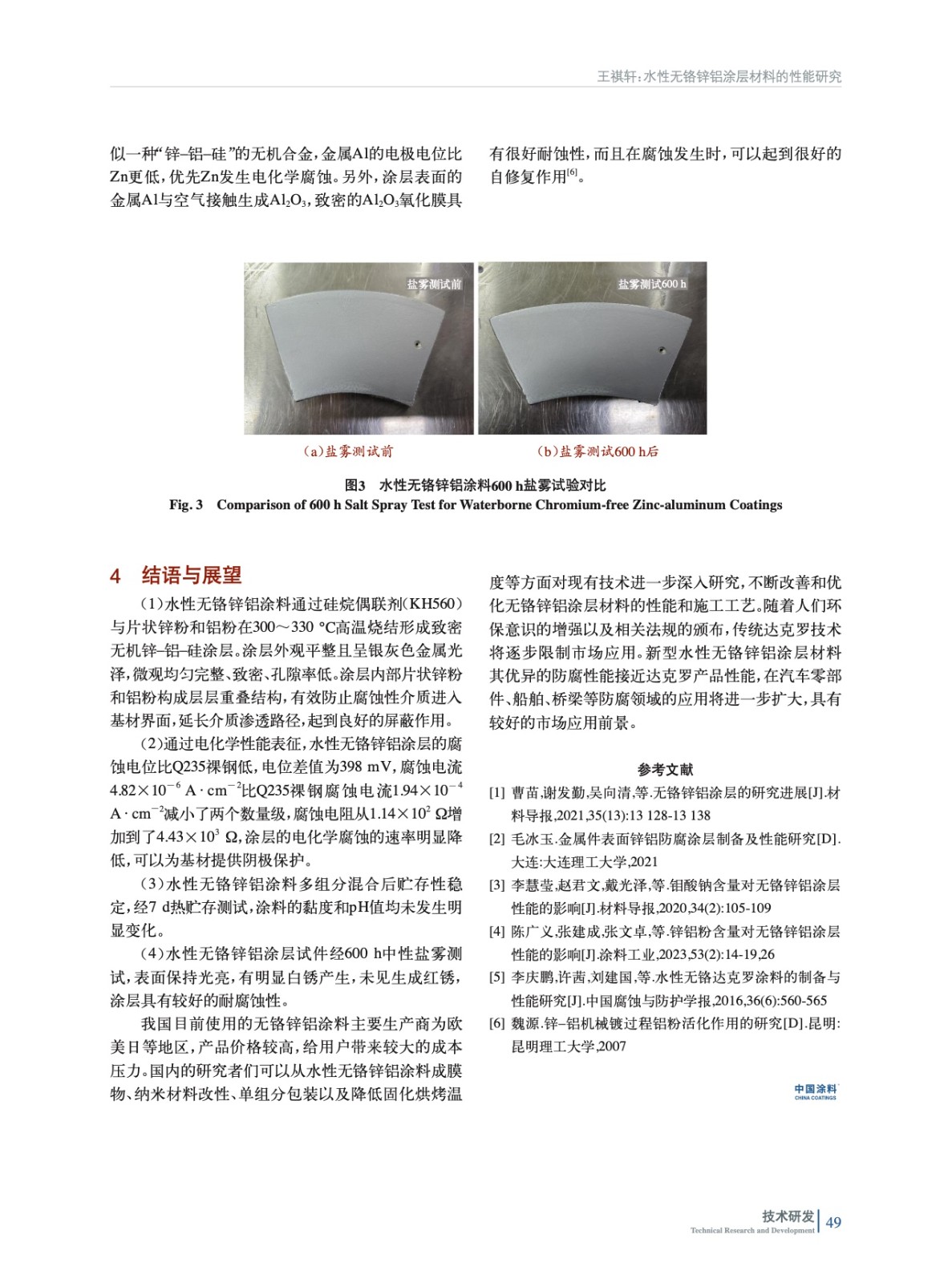 水性無鉻鋅鋁涂層材料的性能研究