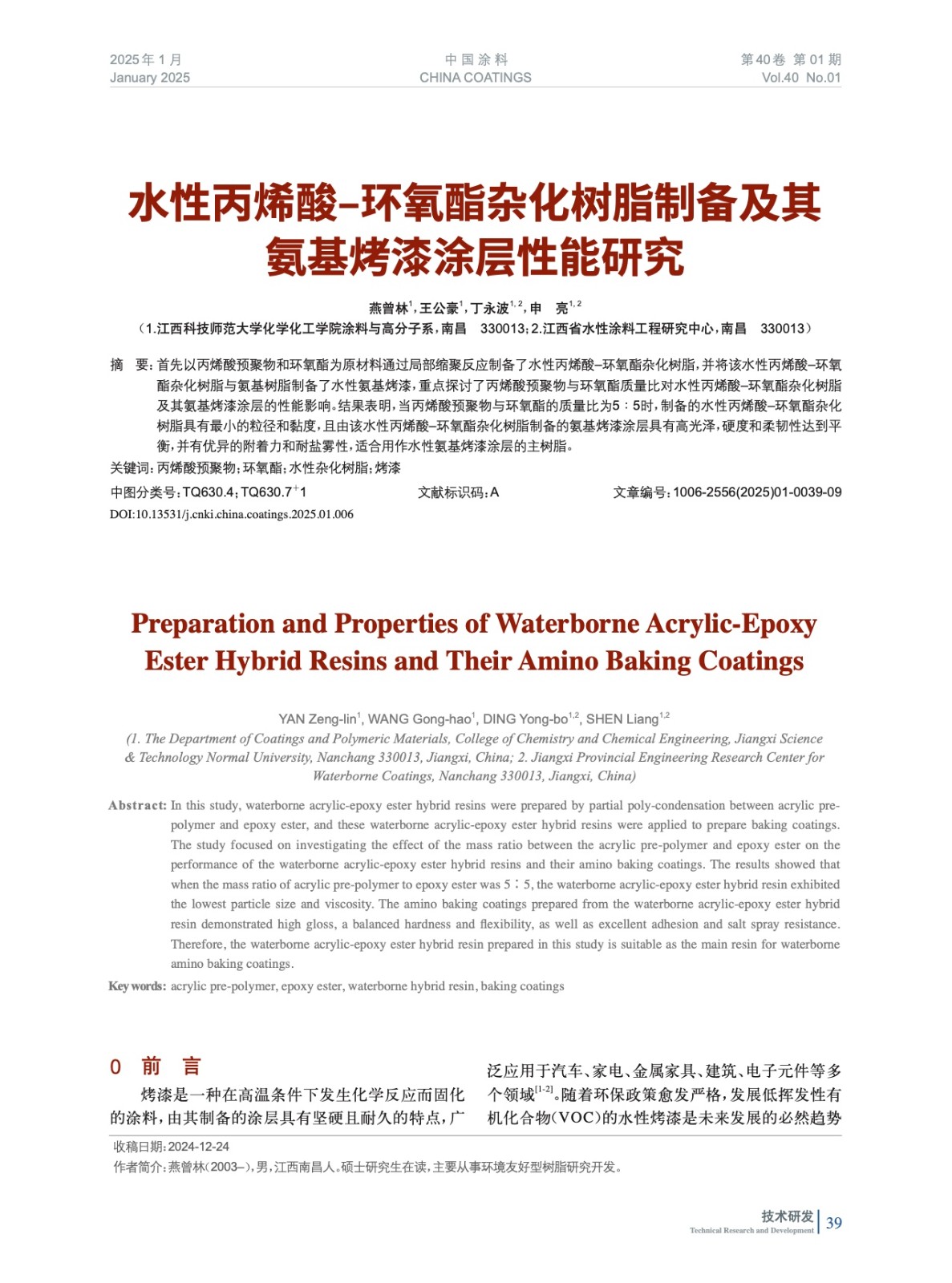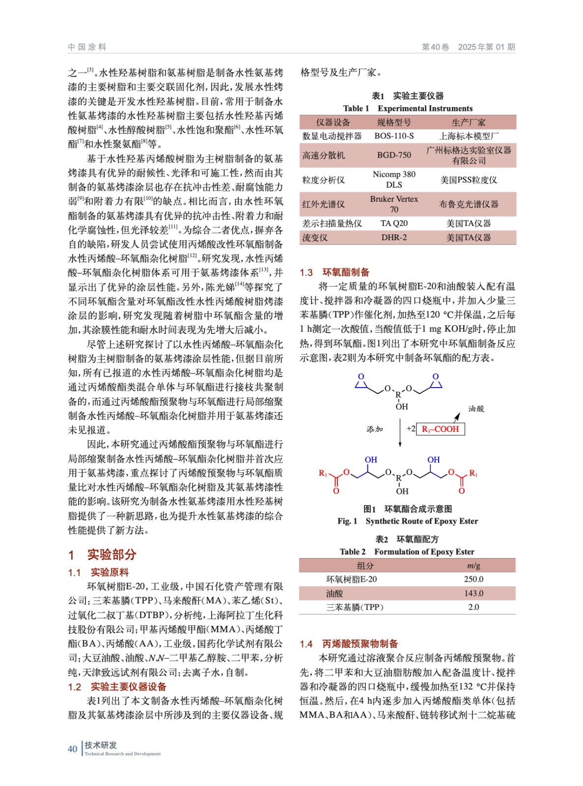 水性丙烯酸–環(huán)氧酯雜化樹脂制備及其氨基烤漆涂層性能研究