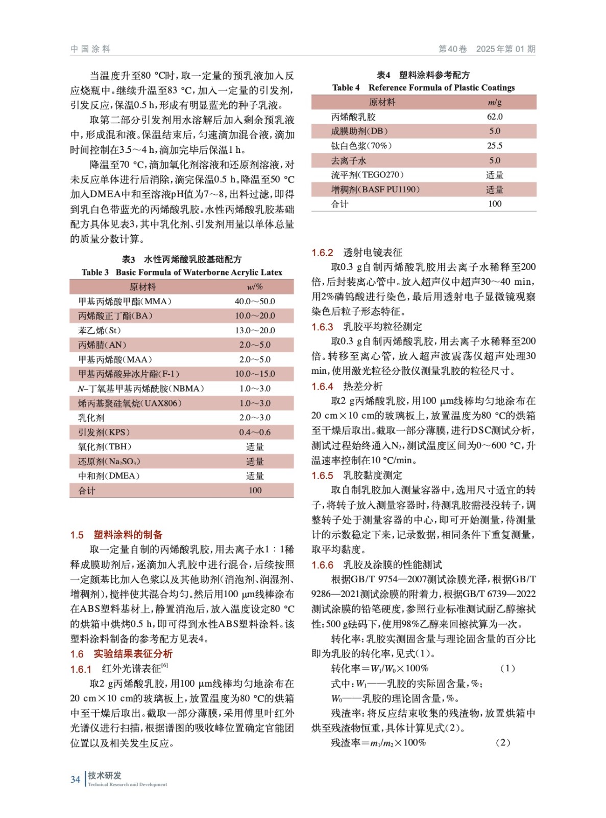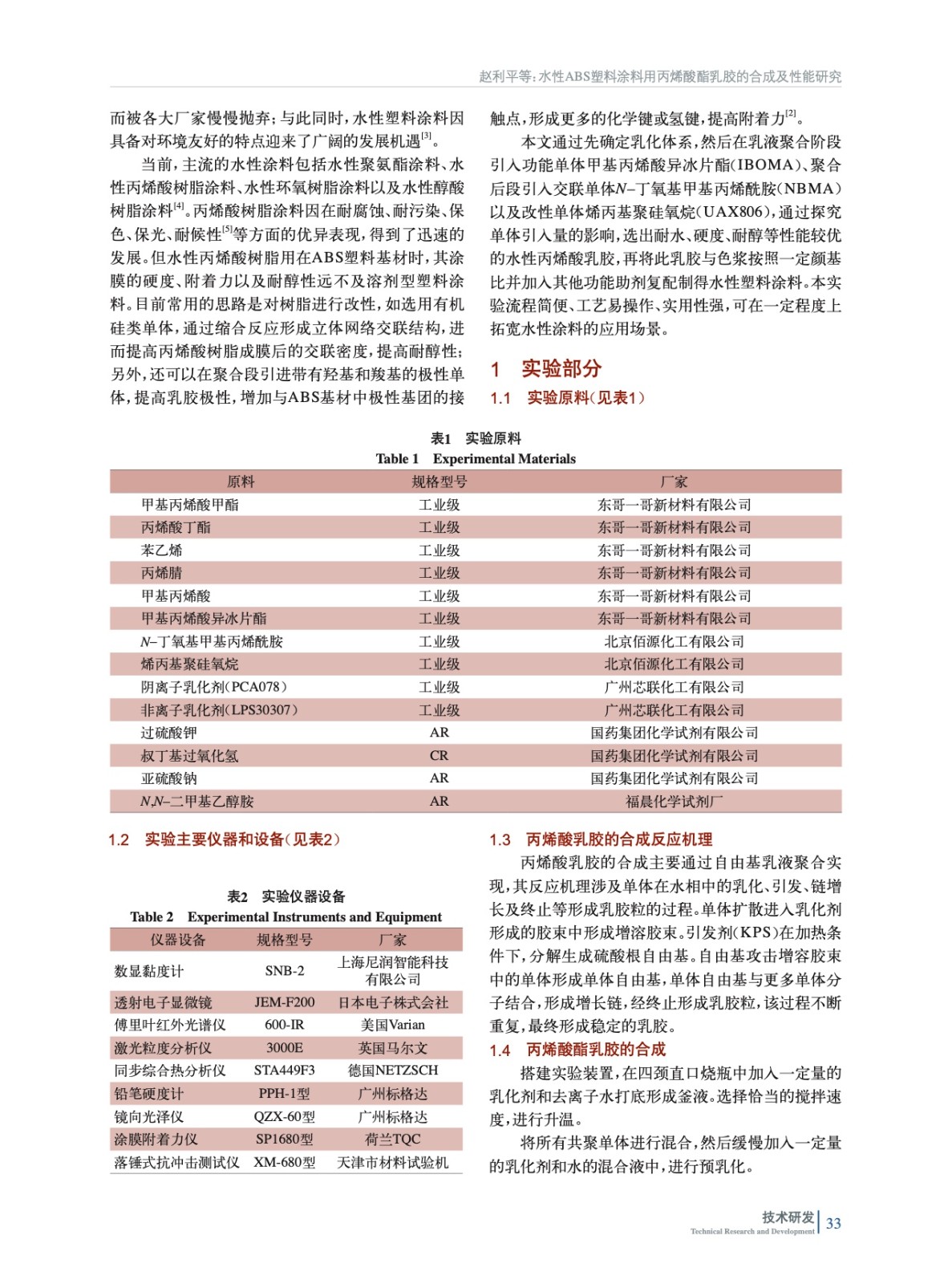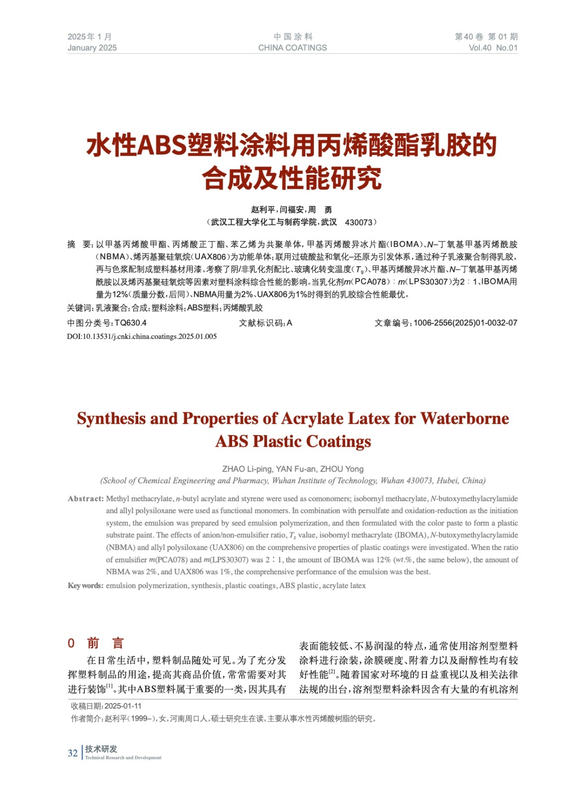 水性ABS塑料涂料用丙烯酸酯乳膠的合成及性能研究