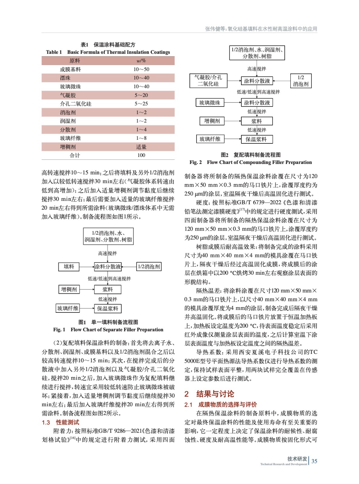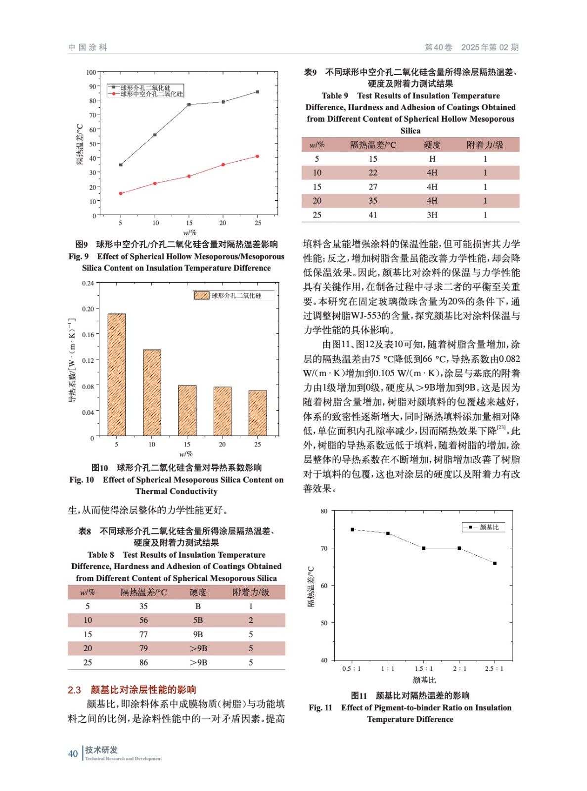 摘要:針對工業節能領域對高溫保溫材料的迫切需求,針對傳統涂層在200 ℃溫區存在的厚度過大、施工工藝復雜及功能單一等問題,系統開展保溫涂層的研發。選取無機體系樹脂作為成膜物質,采用以SiO2為主要成分的漂珠、玻璃微珠、氣凝膠和介孔二氧化硅為填料,通過中空或多孔結構降低熱傳導,且適配多種基體的分散性,實現高效隔熱與工藝兼容性。實驗考察了不同樹脂、填料、顏基比及復配比例對保溫涂料隔熱溫差、導熱系數、硬度和附著力的影響。結果發現,以無機體系樹脂WJ-553為成膜樹脂,顏基比1.5∶1,中空玻璃微珠與球形介孔二氧化硅填料總質量分數為30%,球形介孔二氧化硅摻雜量為4%時,保溫涂料導熱系數可達0.086 W/(m·K),硬度6B,附著力等級為1級,耐溫性能突破200 ℃閾值。該研究成果為開發兼具高效隔熱、機械可靠及施工便利的新型工業保溫涂層提供了理論依據和技術方案,在高溫管道、工業窯爐等節能領域展現出重要應用價值。