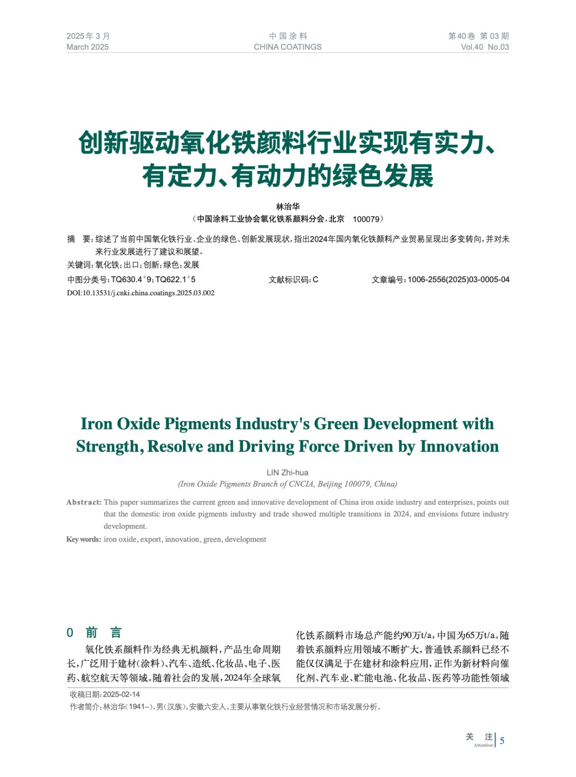 創新驅動氧化鐵顏料行業實現有實力、有定力、有動力的綠色發展