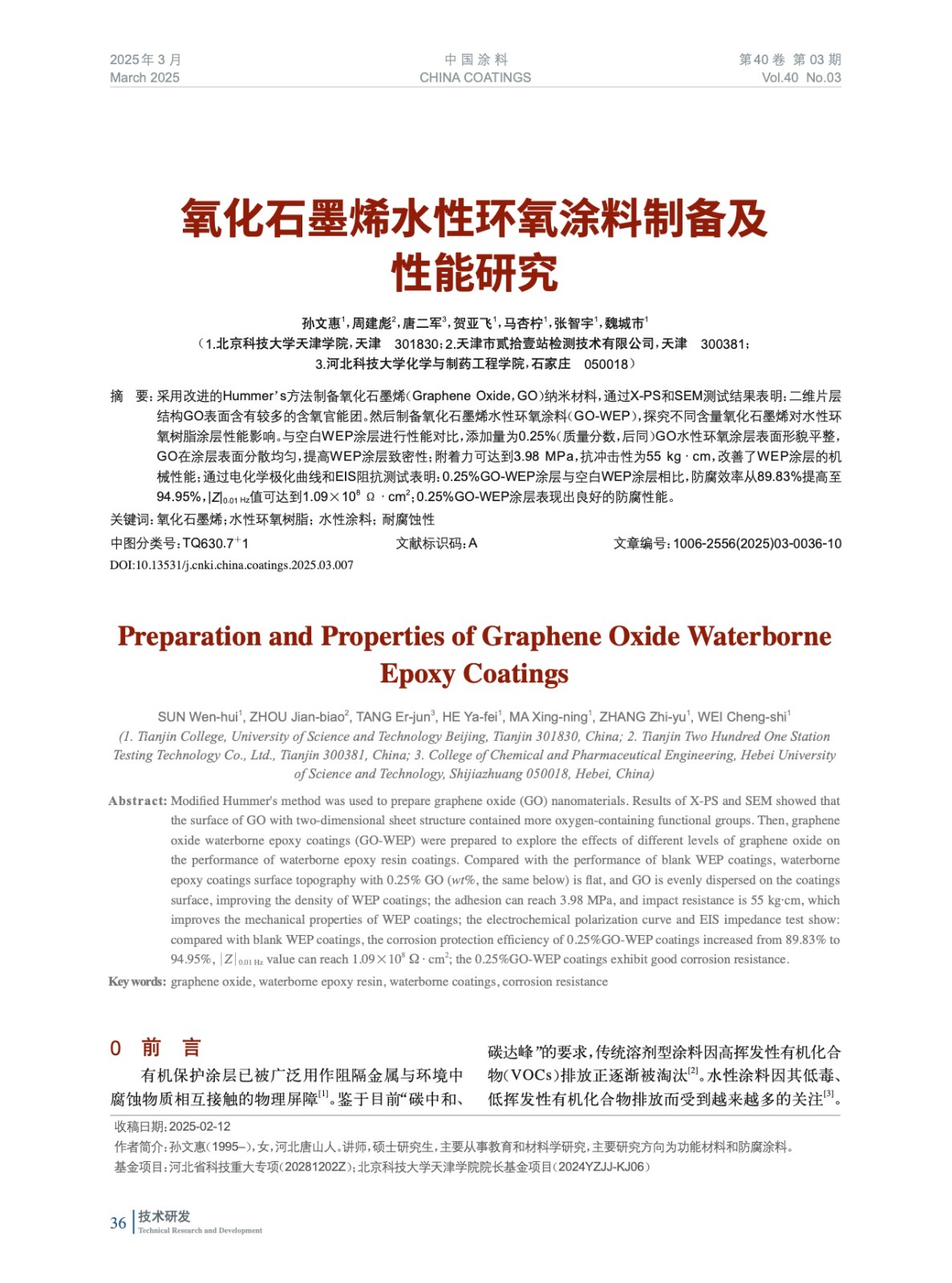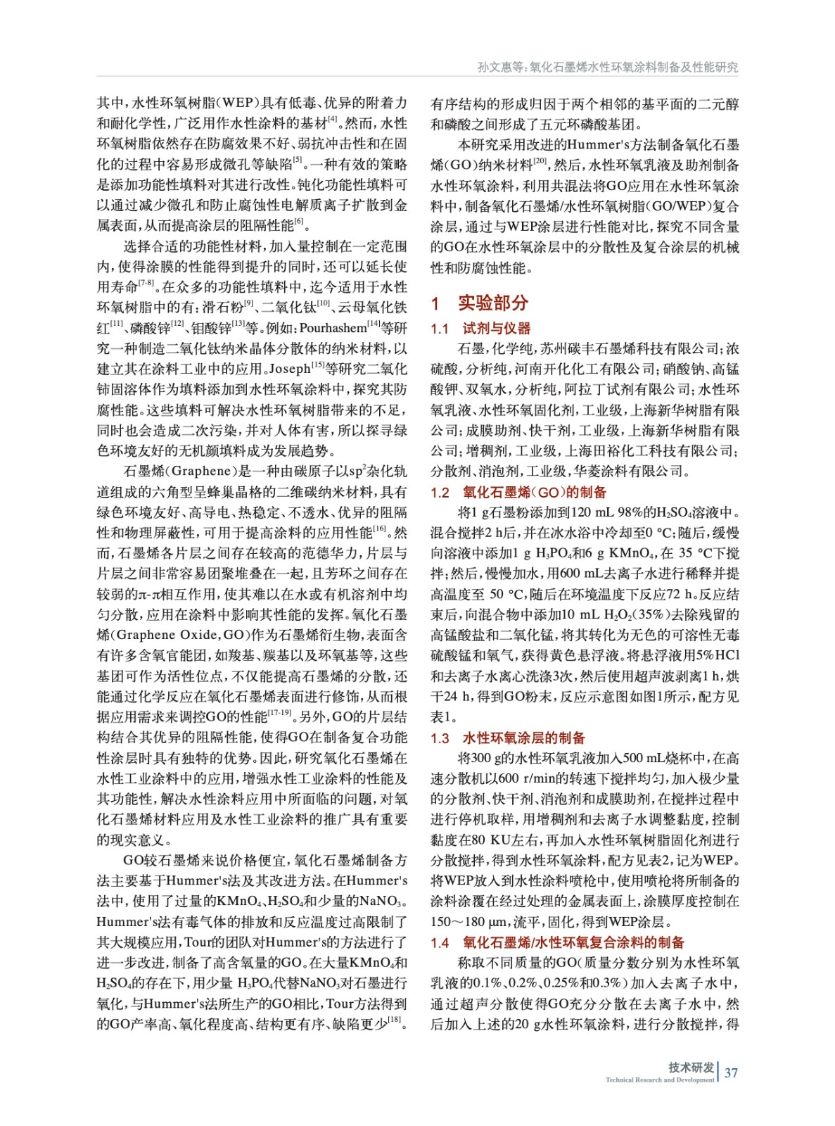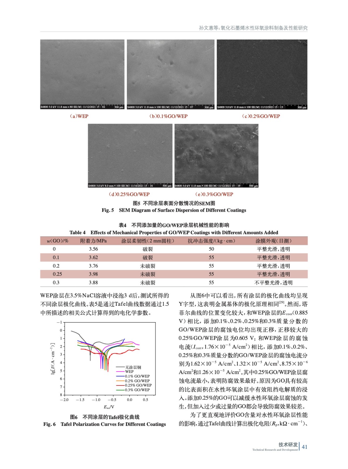 氧化石墨烯水性環氧涂料制備及性能研究