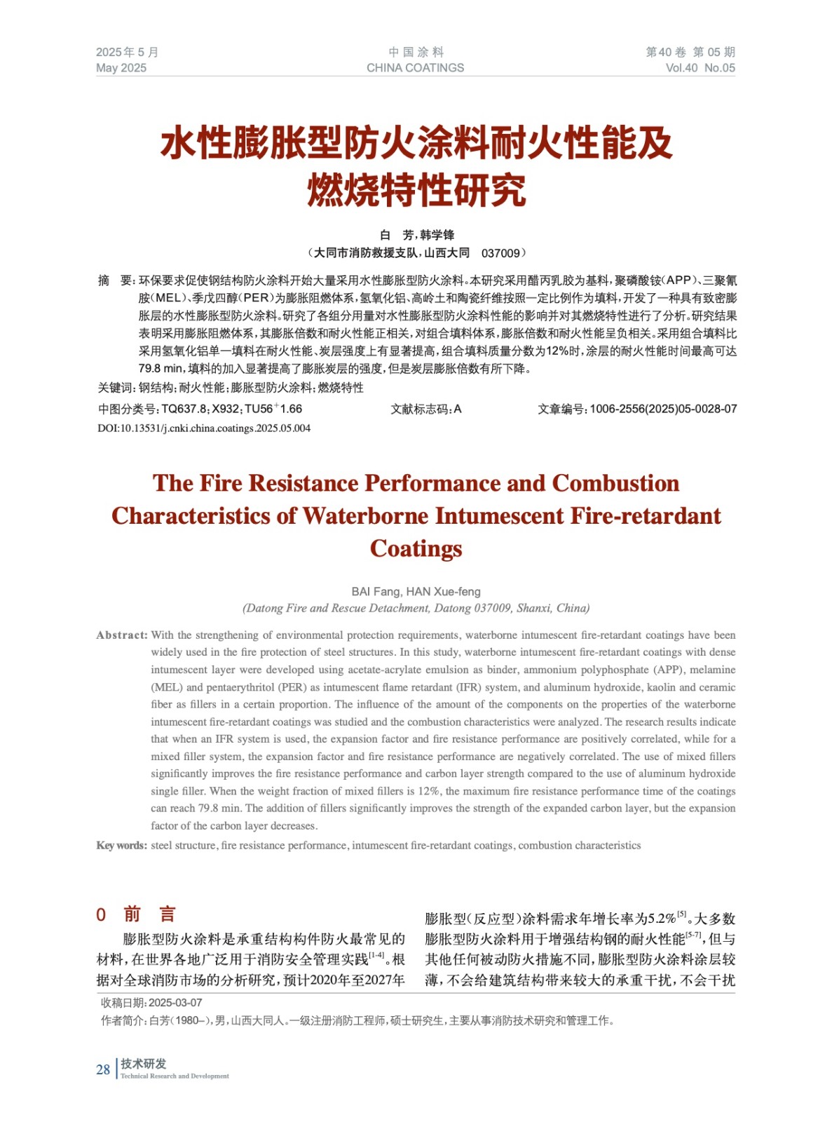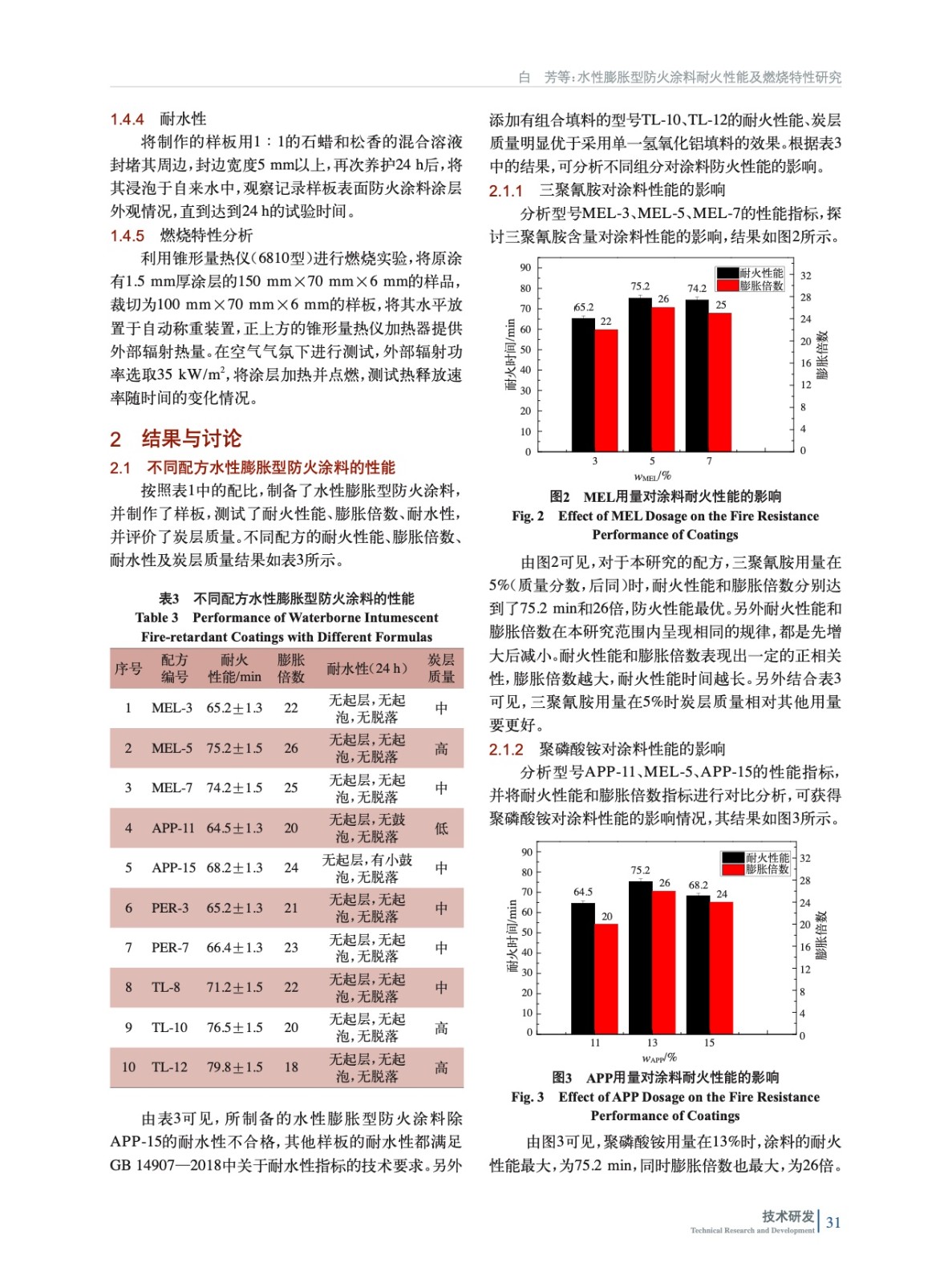 水性膨脹型防火涂料耐火性能及燃燒特性研究