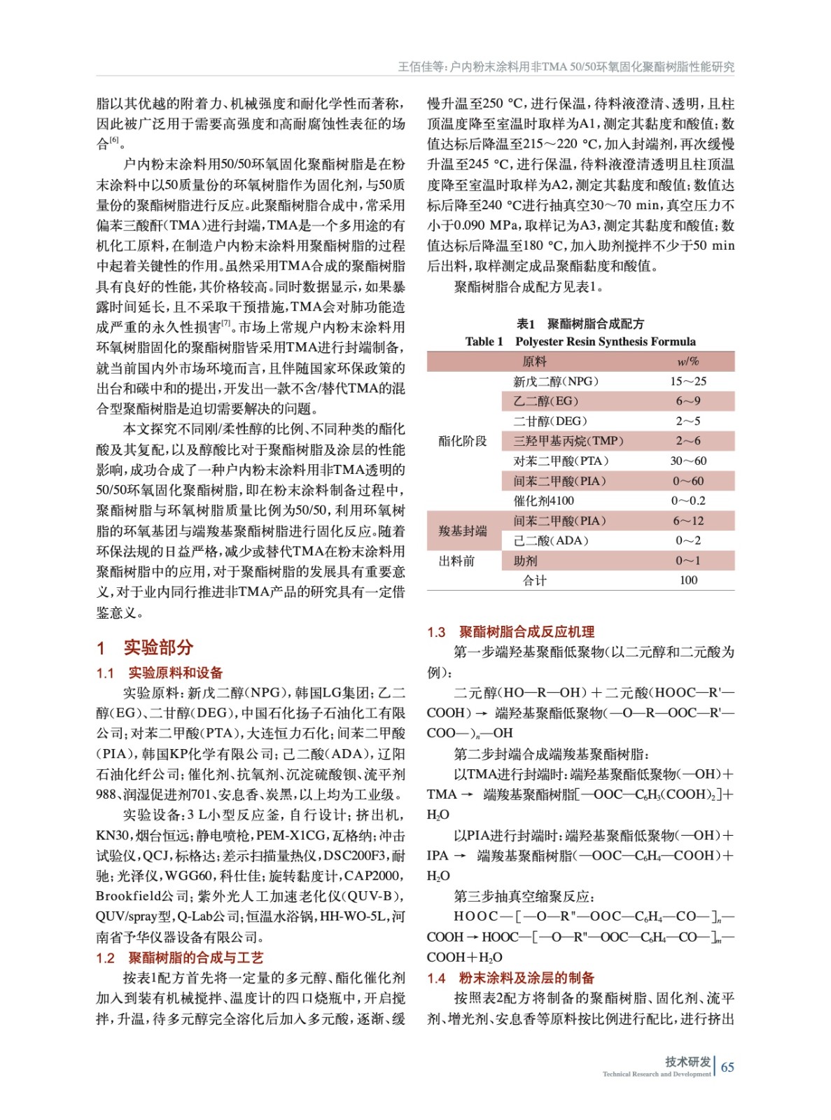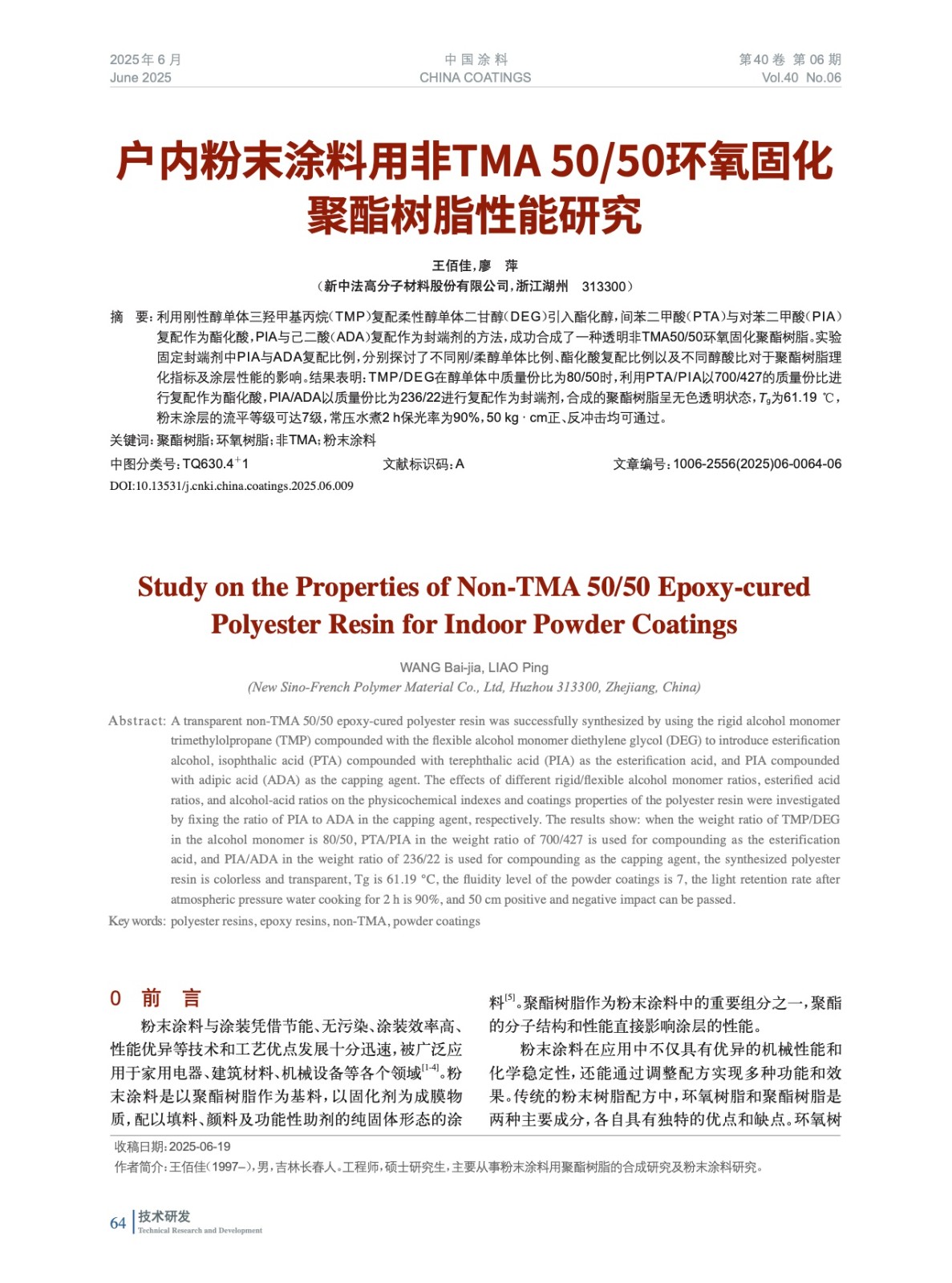 戶內粉末涂料用非TMA 50/50環(huán)氧固化聚酯樹脂性能研究