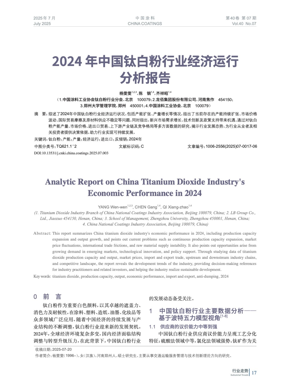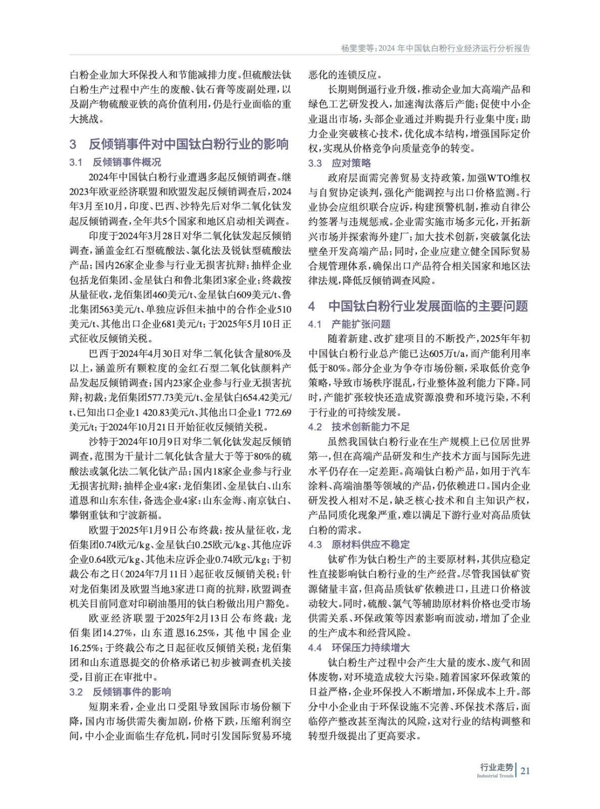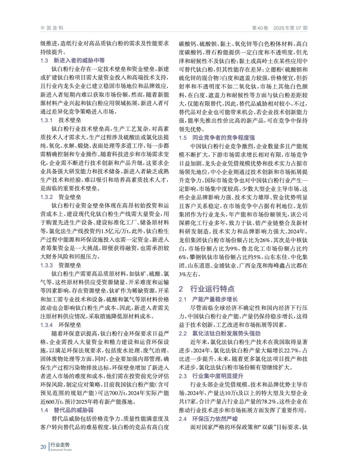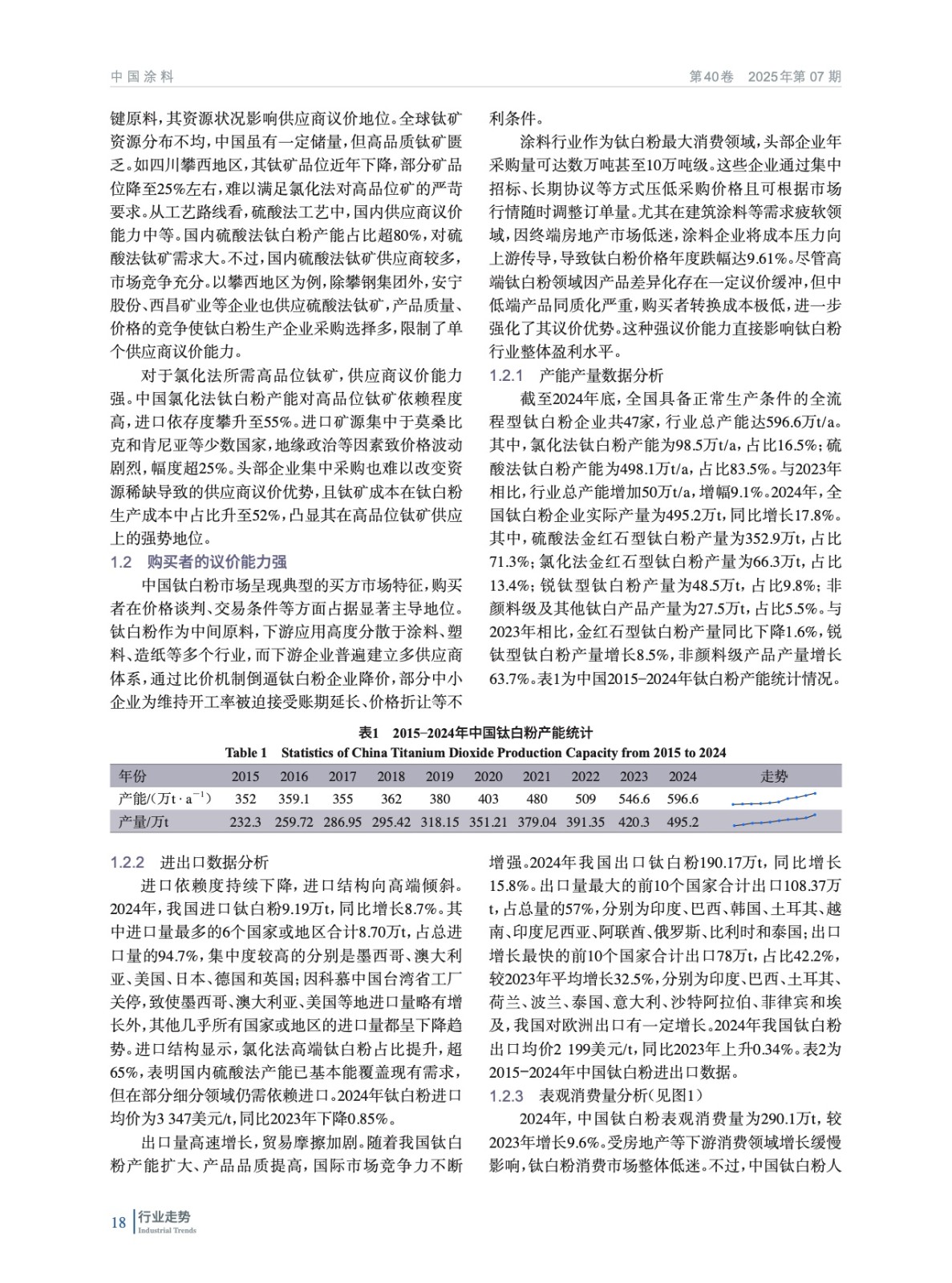 摘要:綜述了2024年中國鈦白粉行業經濟運行狀況,包括產能擴張、產量增長等情況,指出了當前存在的產能持續擴張、市場價格波動、國際貿易摩擦及原材料供應不穩定等問題。同時指出,新興市場需求增長、技術創新及政策支持帶來機遇。通過對鈦白粉產能產量、市場價格、進出口貿易、上下游產業鏈及競爭格局等多方面數據的研究,揭示行業發展態勢,為行業從業者及相關投資者提供決策依據,助力行業實現可持續發展。