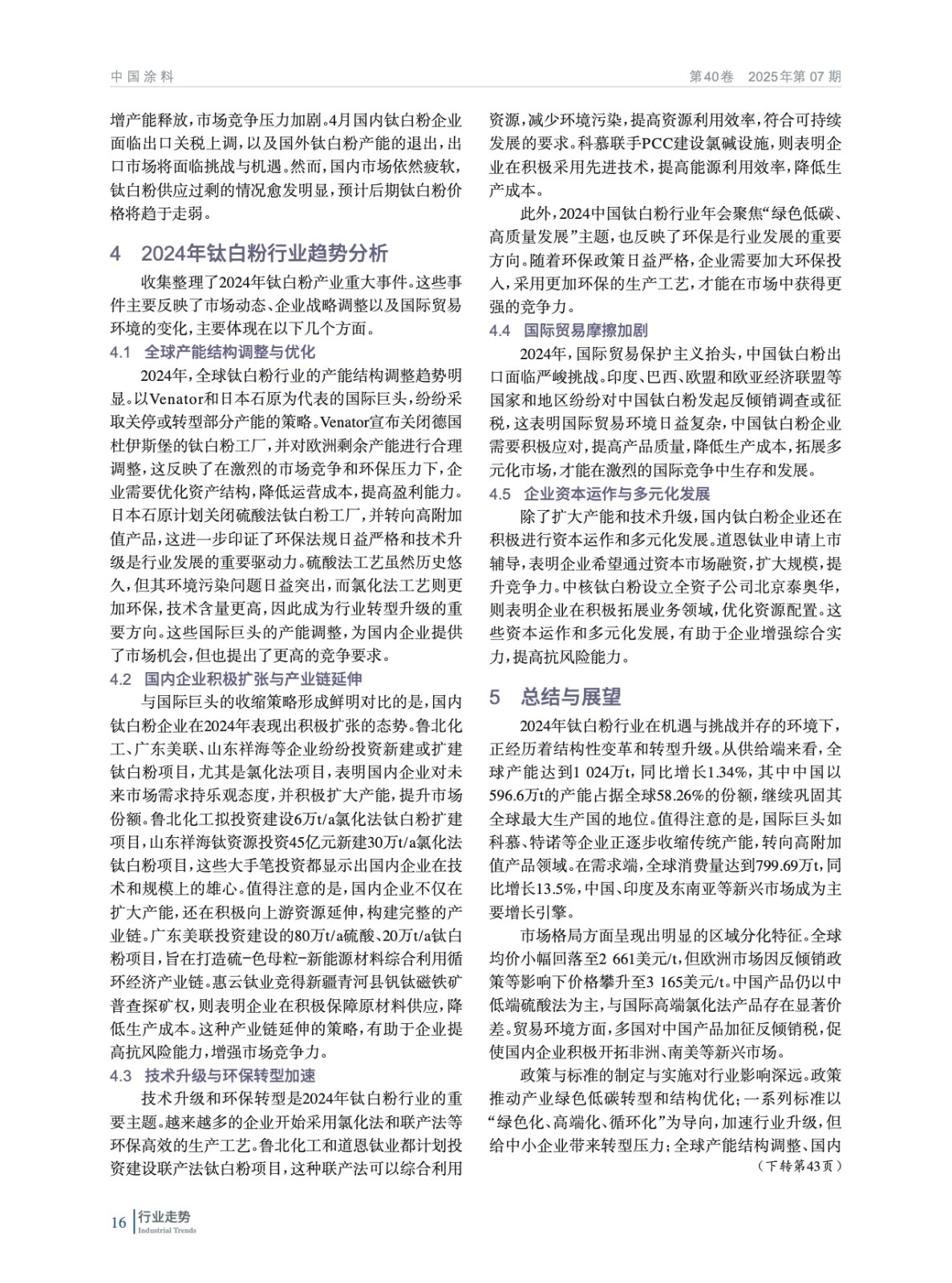 摘要:系統闡述了全球鈦白粉的供需現狀,涵蓋了各地區的鈦白粉產能和產量、主要生產企業的產能分布情況,以及各地區鈦白粉產品的消費和價格動態,并對未來的發展趨勢進行了預測。重點分析了中國鈦白粉行業的產能、產量、表觀消費量、產品結構變化及進出口情況。此外,還對2024年鈦白粉行業重大事件進行了深入分析,以全面呈現鈦白粉行業的現狀與未來發展方向。
