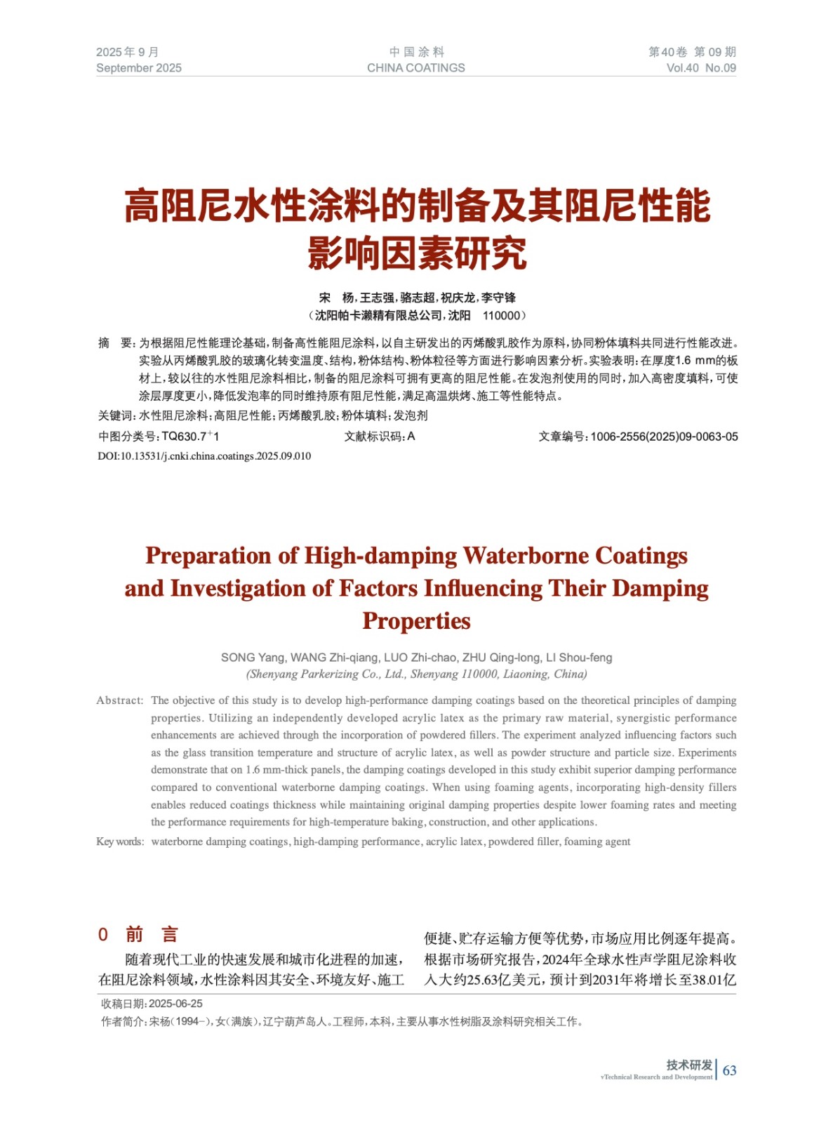 高阻尼水性涂料的制備及其阻尼性能影響因素研究