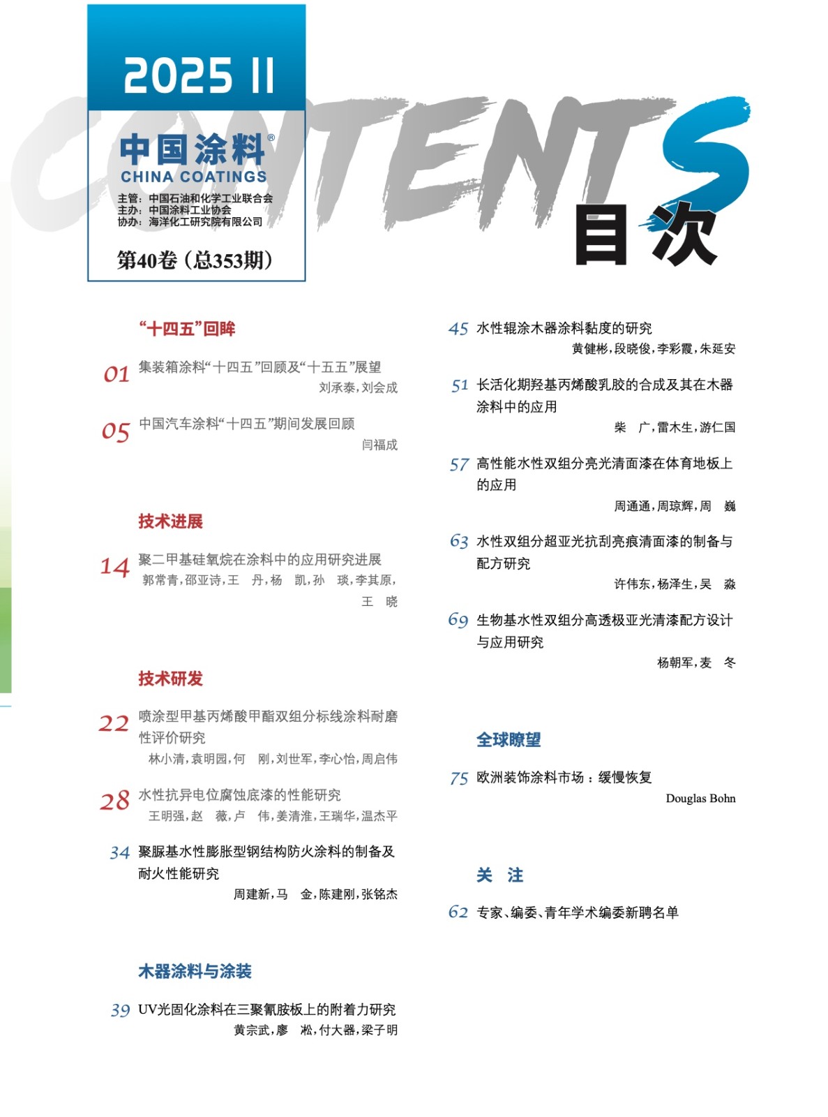 《中國涂料》2025年第11期版權及目錄