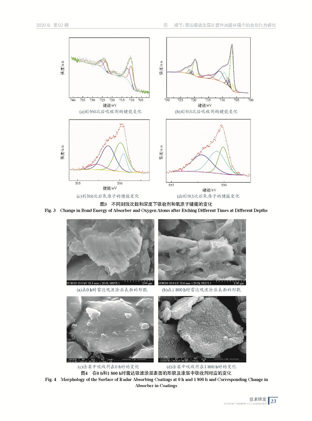 摘要:采用實(shí)驗(yàn)室自制的雷達(dá)吸收涂層,探究雷達(dá)吸波涂層在紫外環(huán)境中的老化行為,開展了紫外光老化進(jìn)行加速老化實(shí)驗(yàn)。通過SEM和XPS分析表明,雷達(dá)吸波涂層吸收劑氧化產(chǎn)生了細(xì)小均勻的顆粒為Fe2O3,通過EIS分析表明,環(huán)氧樹脂老化過程中產(chǎn)生了羧基陰離子,經(jīng)過了紫外光的加速老化實(shí)驗(yàn),雷達(dá)吸波涂層的表面粗糙度從0.84 μm上升到了1.17 μm。