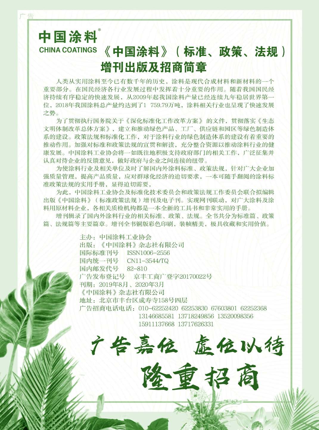 上海翔資、廣告招商、湖南金磐、武漢現(xiàn)代工業(yè)技術(shù)研究院、《中國涂料》征訂通知
