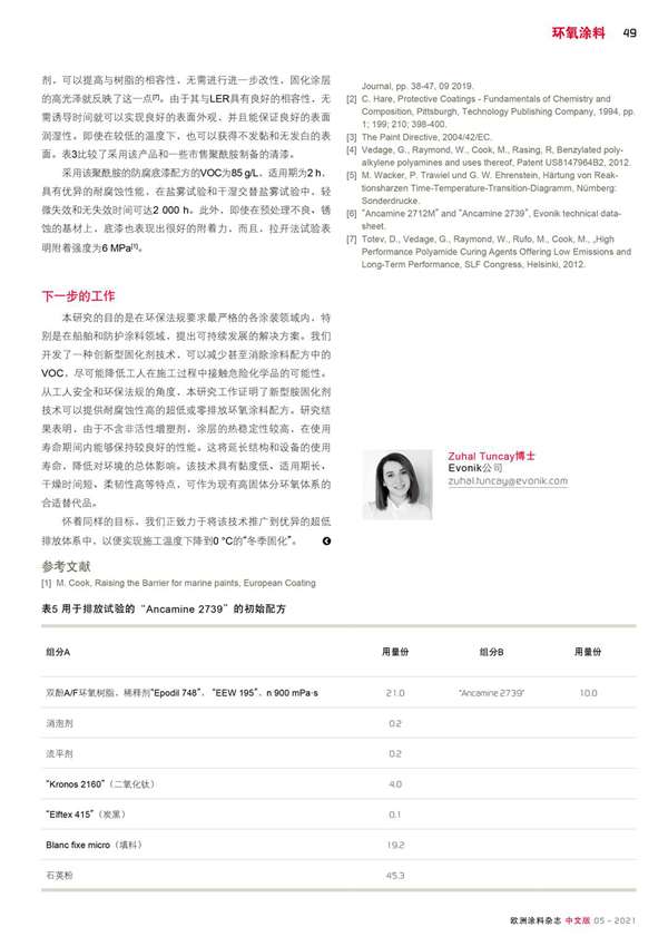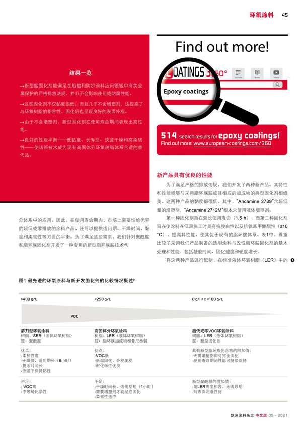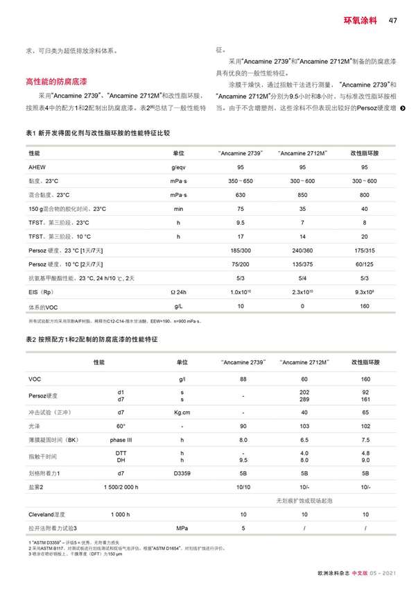 新型胺固化劑符合嚴格的VOC法規(guī),在使用壽命期間表現(xiàn)出良好的性能