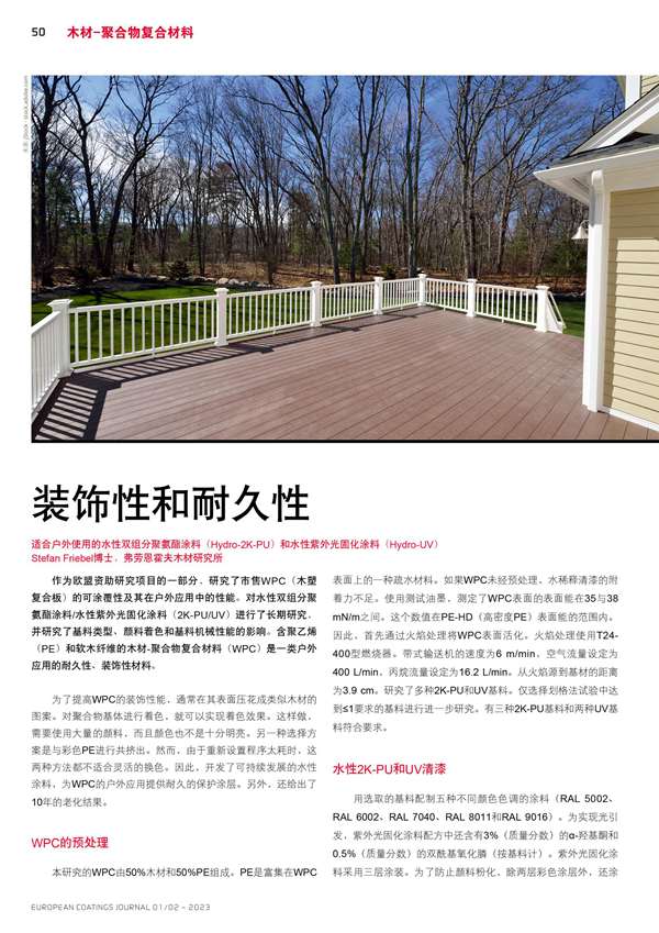 適合戶外使用的水性雙組分聚氨酯涂料(Hydro-2K-PU)和水性紫外光固化涂料(Hydro-UV)